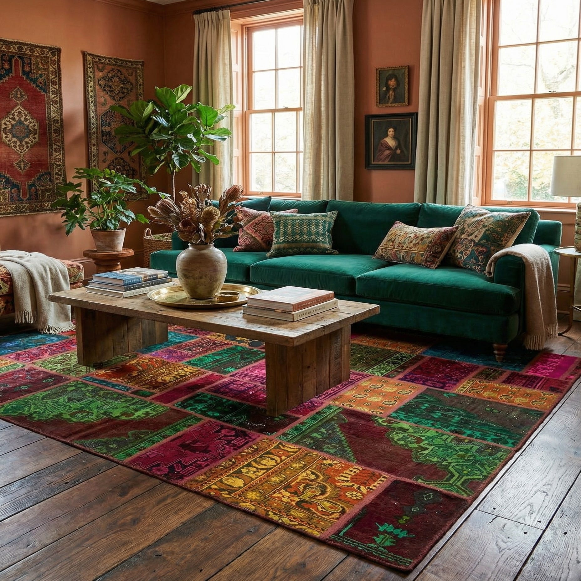 Primary color is Multi. Colors in this rug include: Multi, Blue, Green, Ivory, Navy Blue, Olive, Pink, Violet, Yellow.