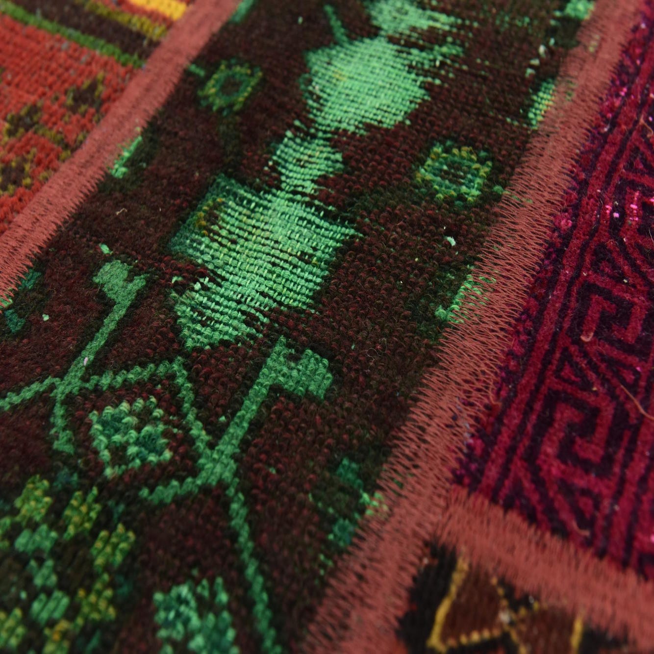 This Persian Ultra Vintage rug is an antique Persian Rug that has been washed, over-dyed, and then shaved down to a low pile. Look at the detail pictures to fully appreciate the uniqueness of this piece.