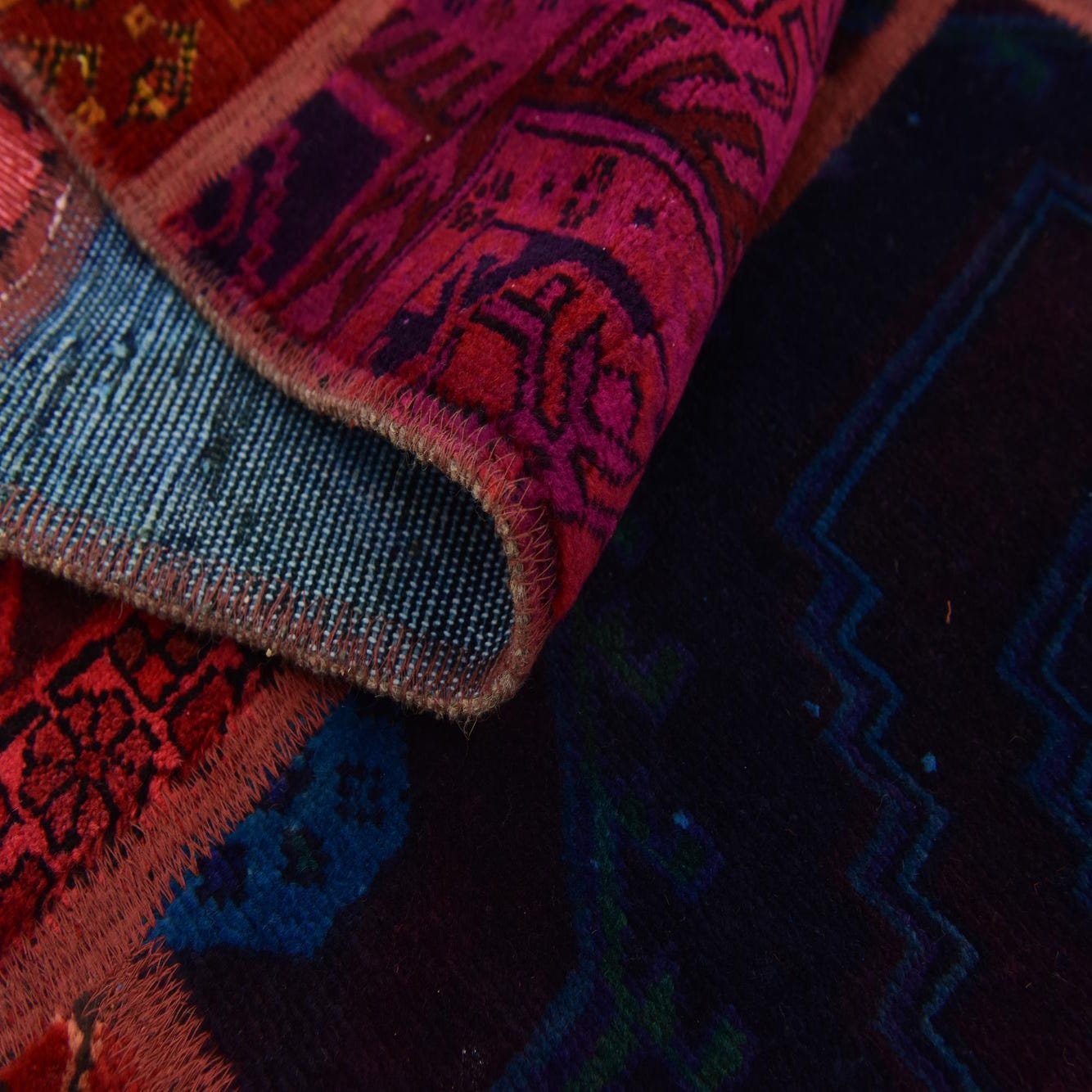 This Persian Ultra Vintage rug is an antique Persian Rug that has been washed, over-dyed, and then shaved down to a low pile. Look at the detail pictures to fully appreciate the uniqueness of this piece.