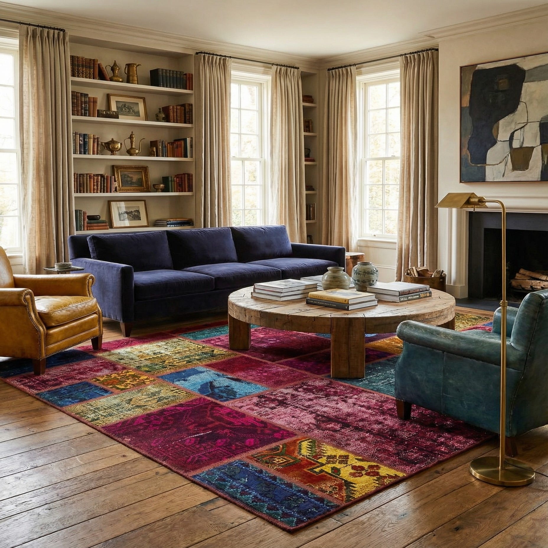 Primary color is Multi. Colors in this rug include: Multi, Beige, Blue, Brown, Black, Burgundy, Green, Navy Blue, Purple, Red.