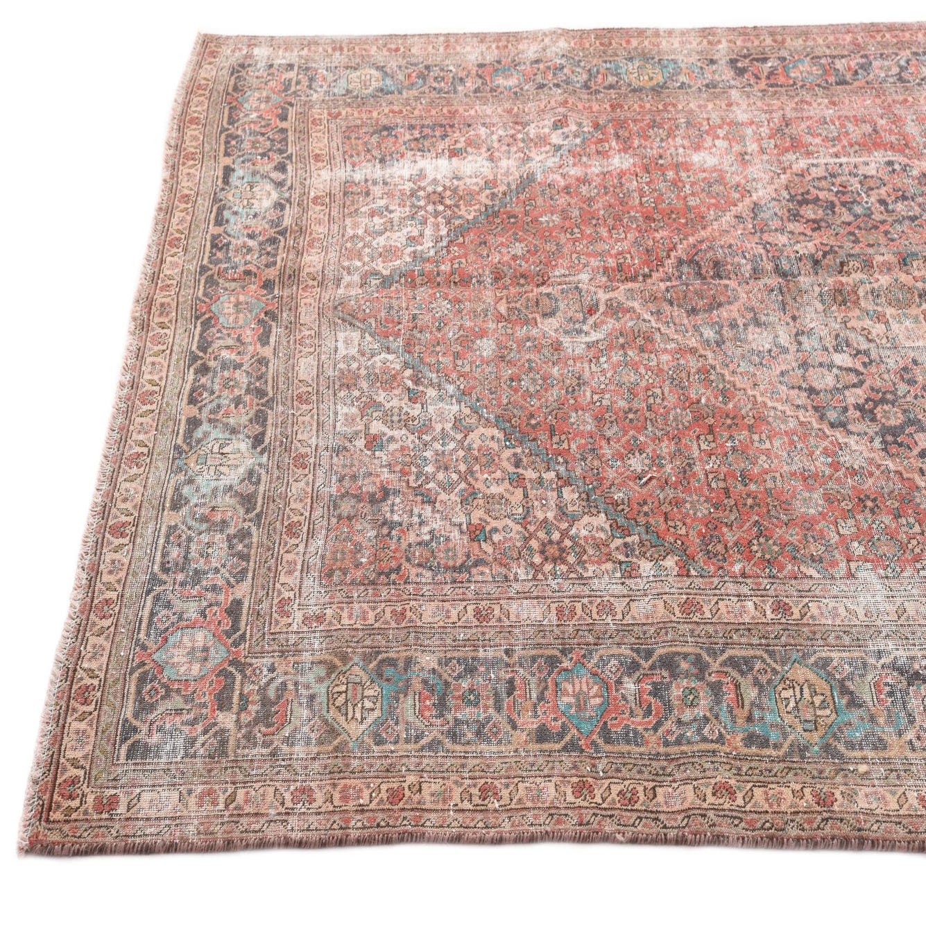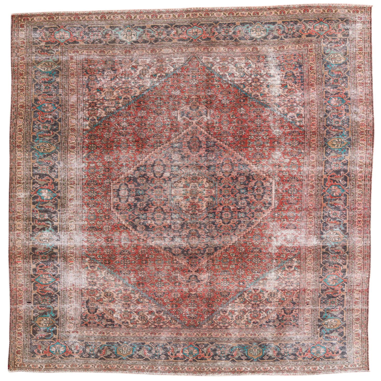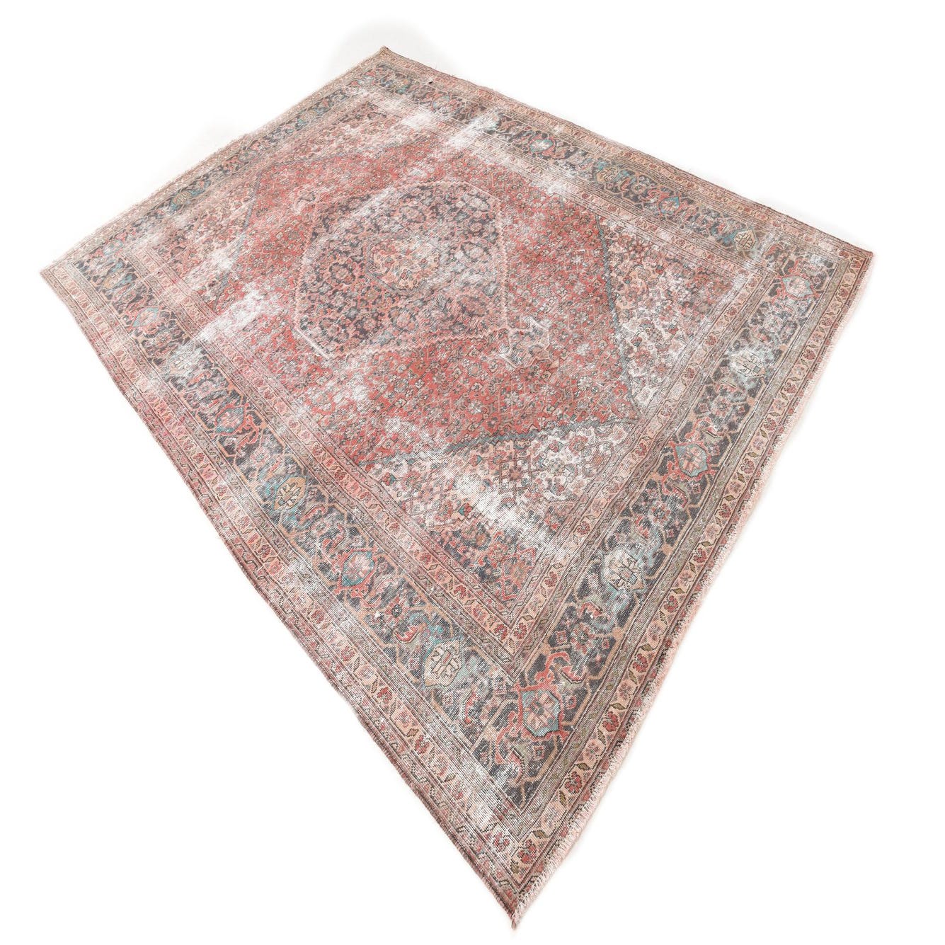 This Persian Ultra Vintage rug is an antique Persian Rug that has been washed, over-dyed, and then shaved down to a low pile. Look at the detail pictures to fully appreciate the uniqueness of this piece.