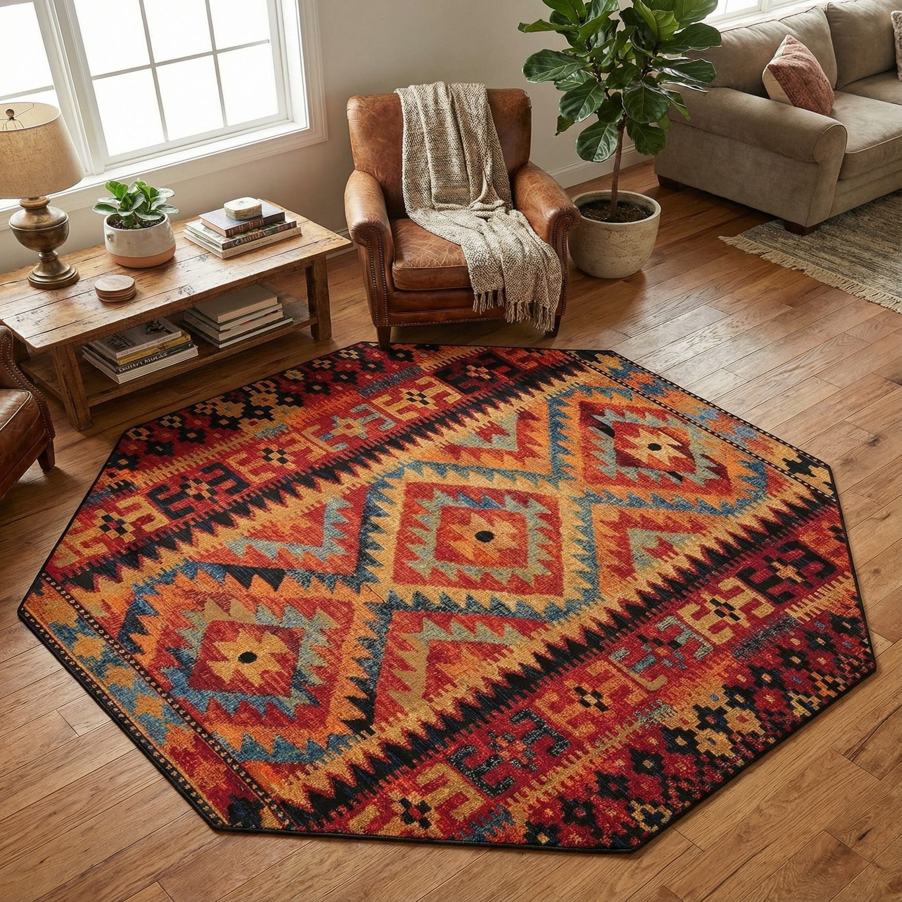7' x 7' Washable Tribal Indoor / Outdoor Octagon Rug