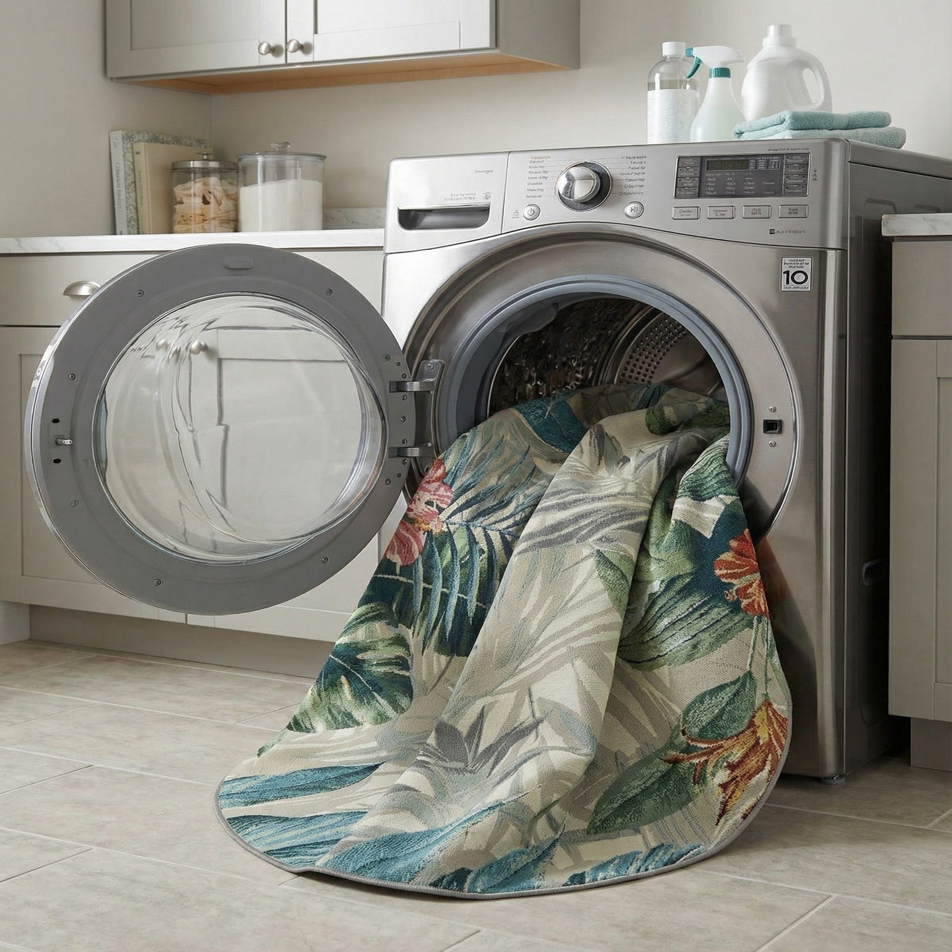 Primary image 7' x 7'  Washable Botanical Indoor / Outdoor Round Rug
