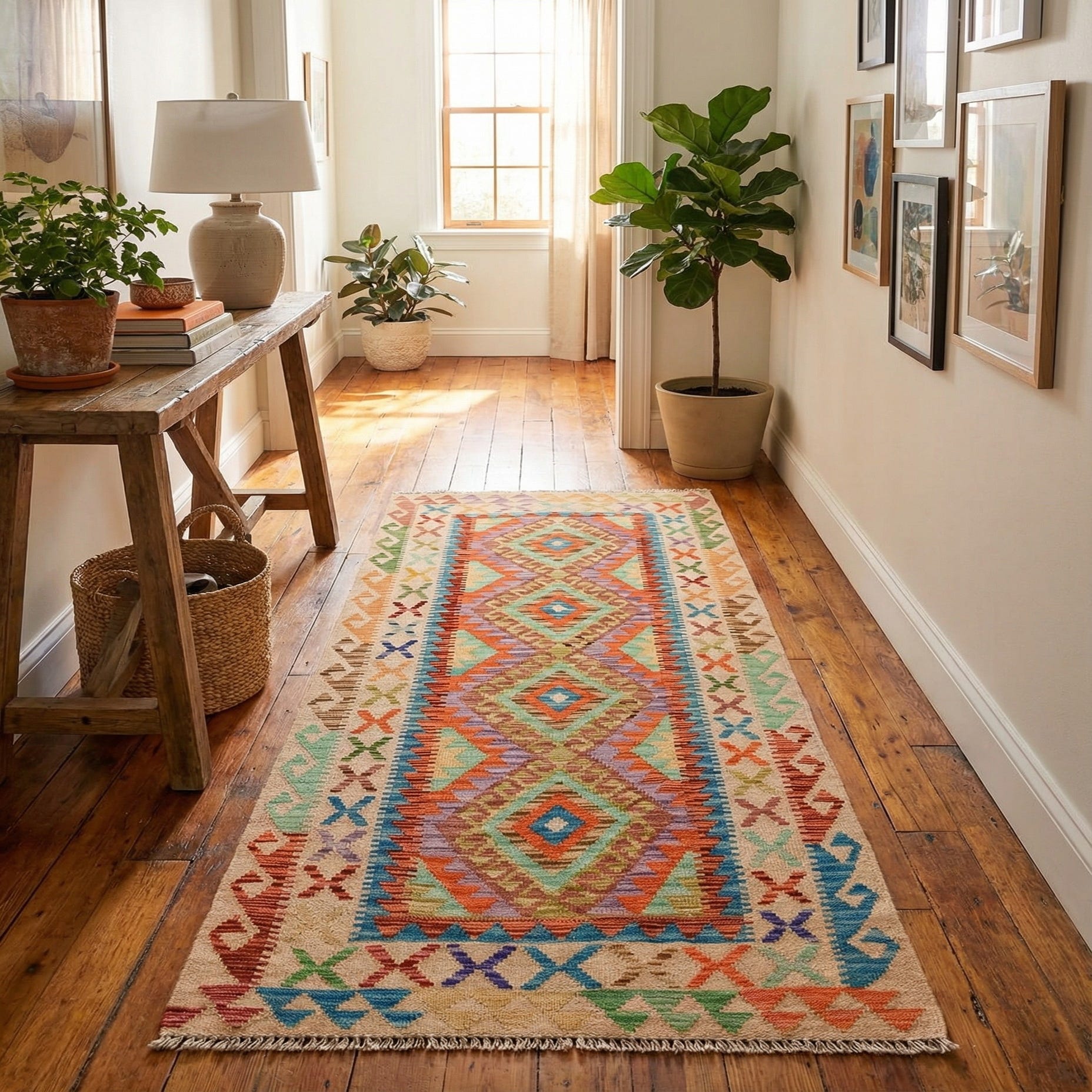 3' 5 x 6' 7 Hand Woven Kilim Maymana Wool Runner Rug
