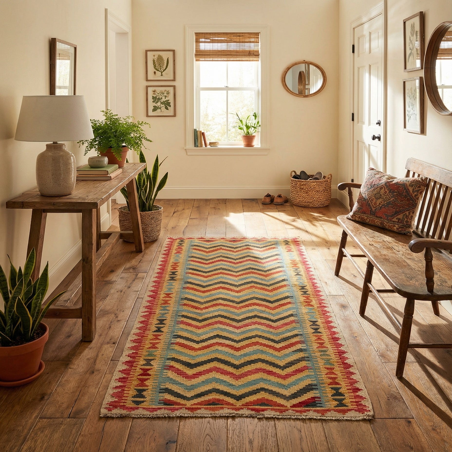 3' 4 x 6' 7 Hand Woven Kilim Maymana Wool Runner Rug