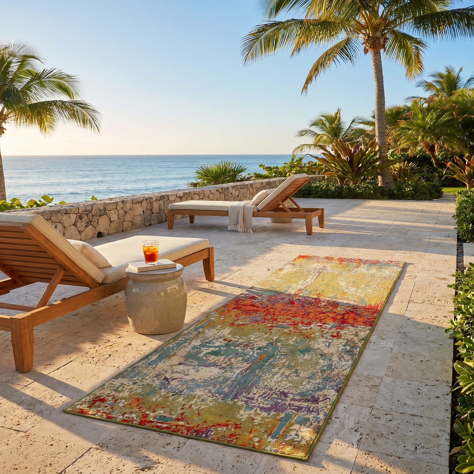 2' 7 x 7' Easy-Clean Modern Indoor / Outdoor Runner Rug