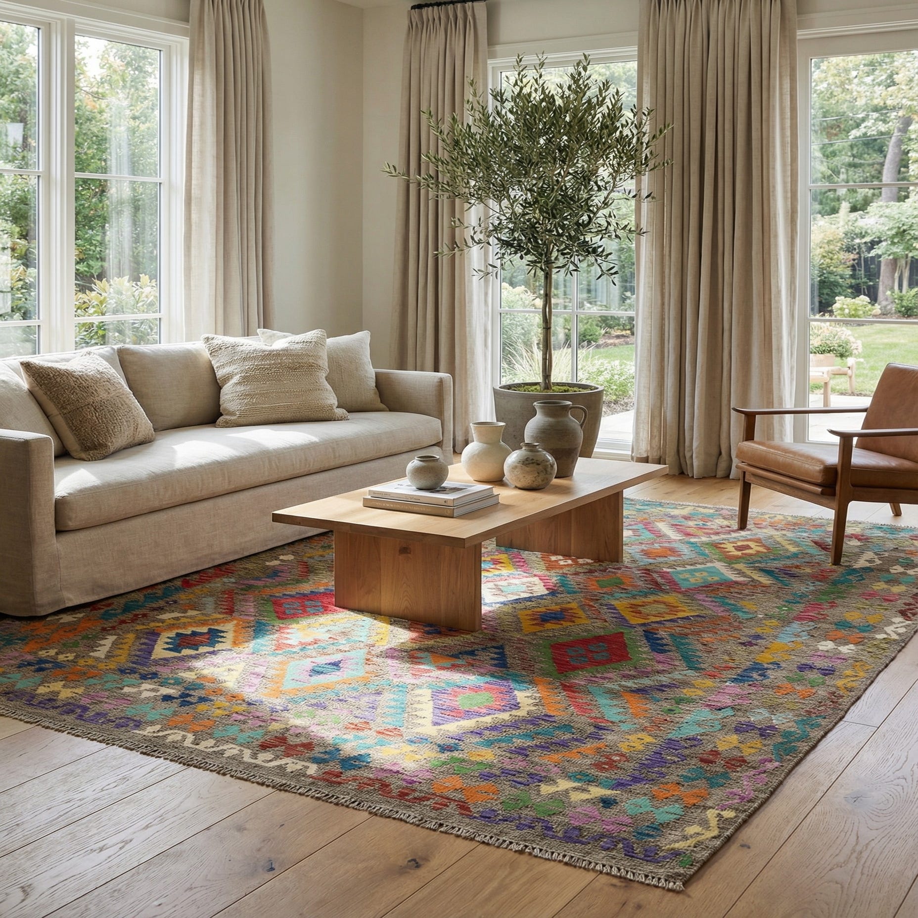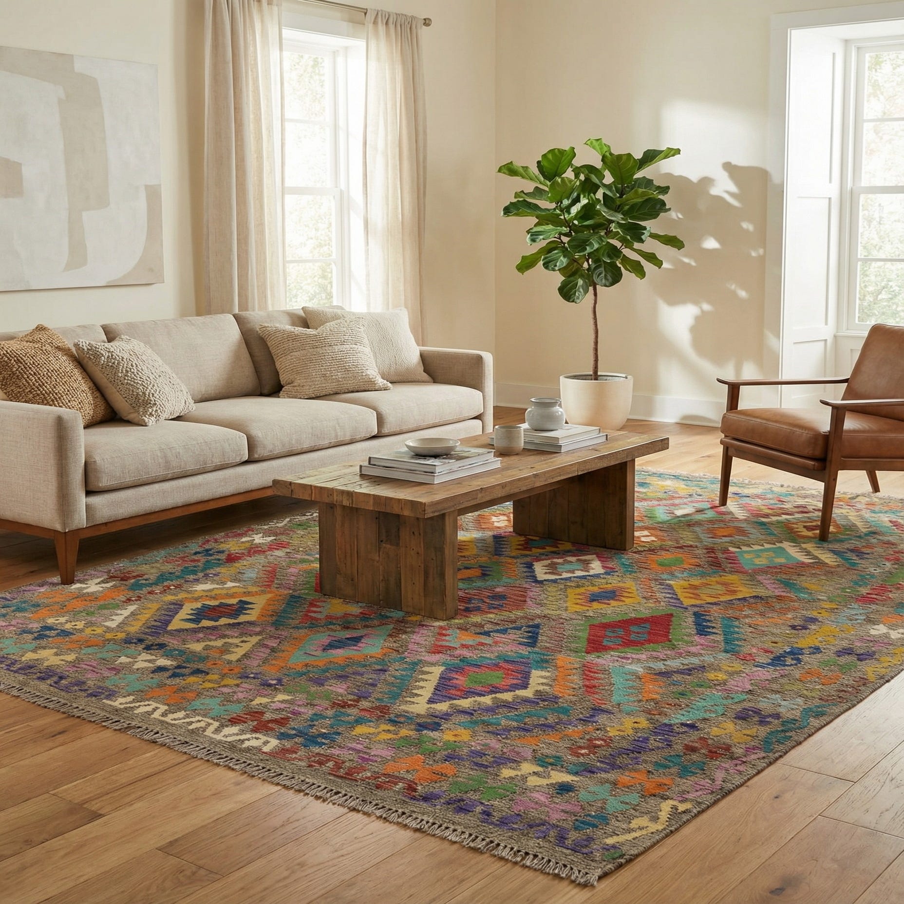 6' 10 x 8' Hand Woven Kilim Modern Wool Square Rug