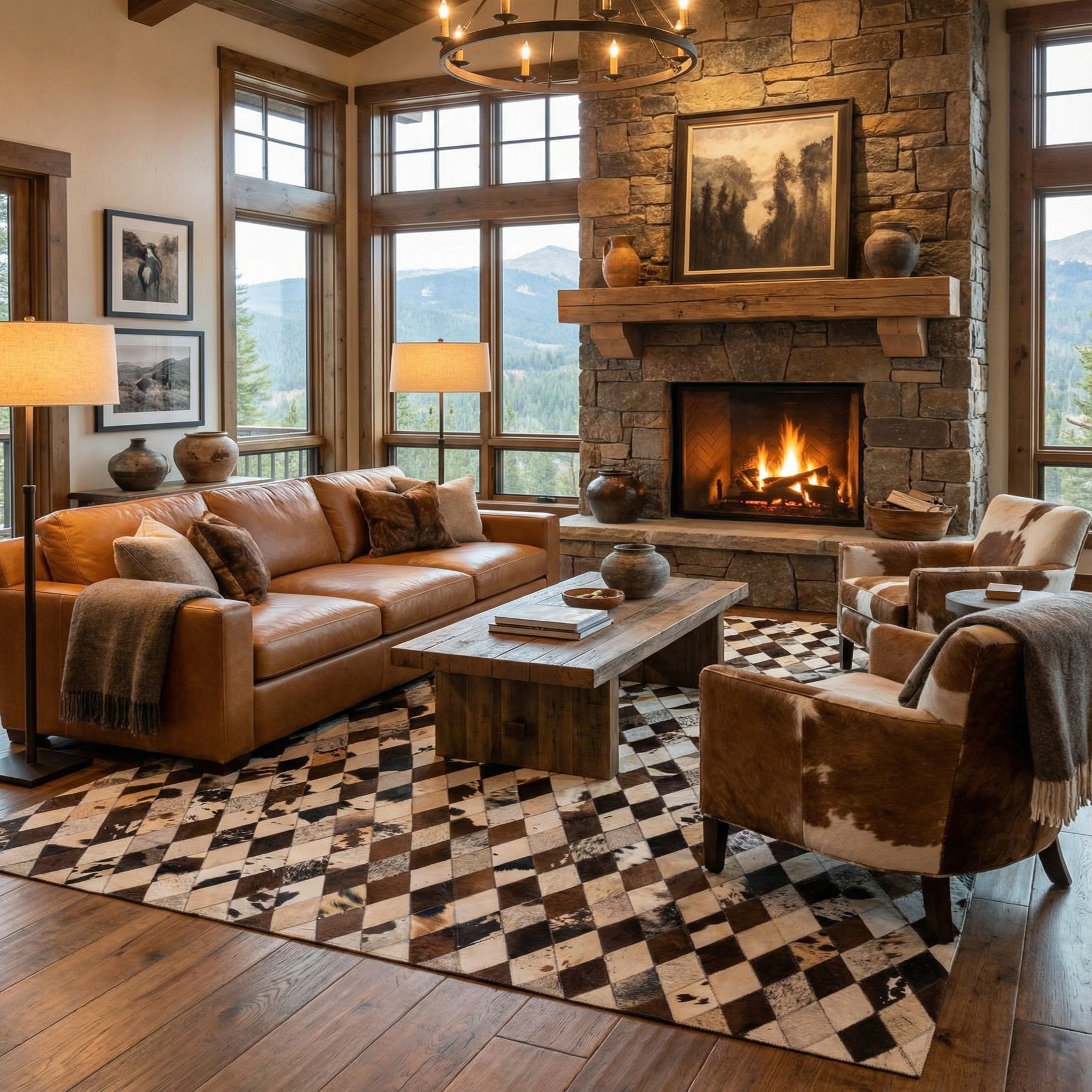 6' 7 x 9' 11 Cowhide Stocks Rug