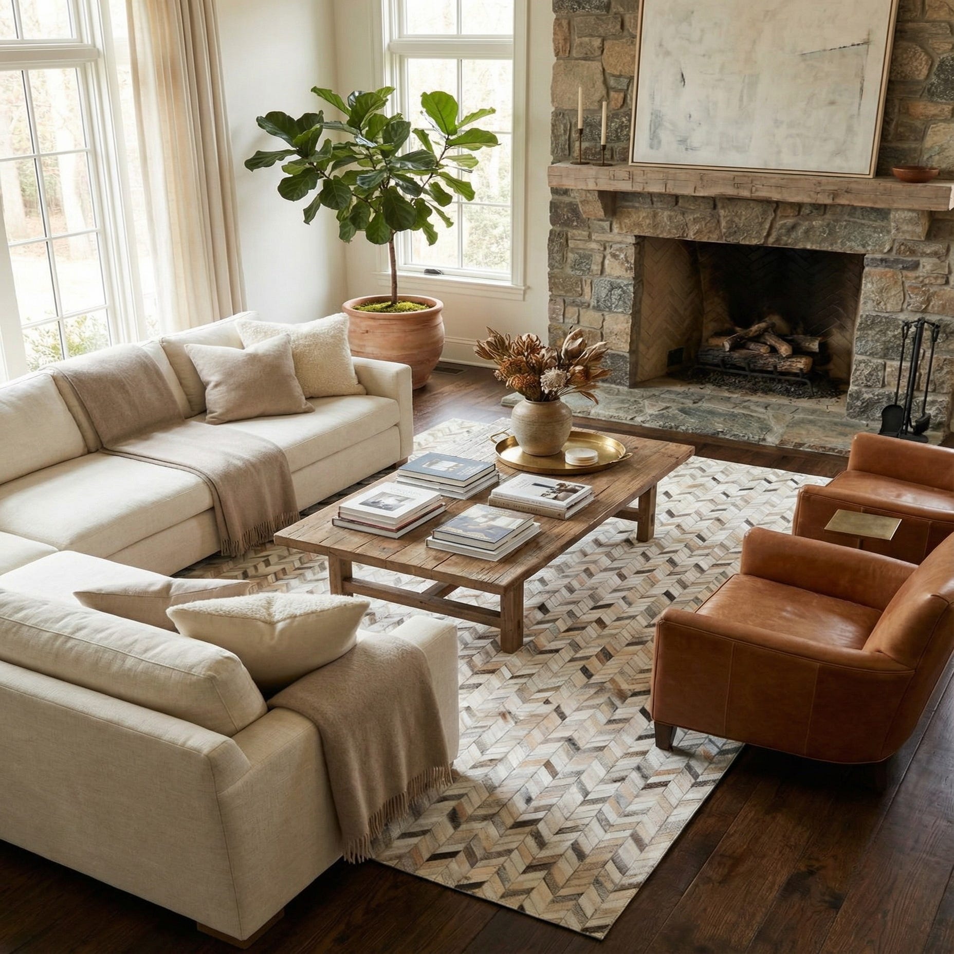 6' 7 x 10' Cowhide Stocks Rug