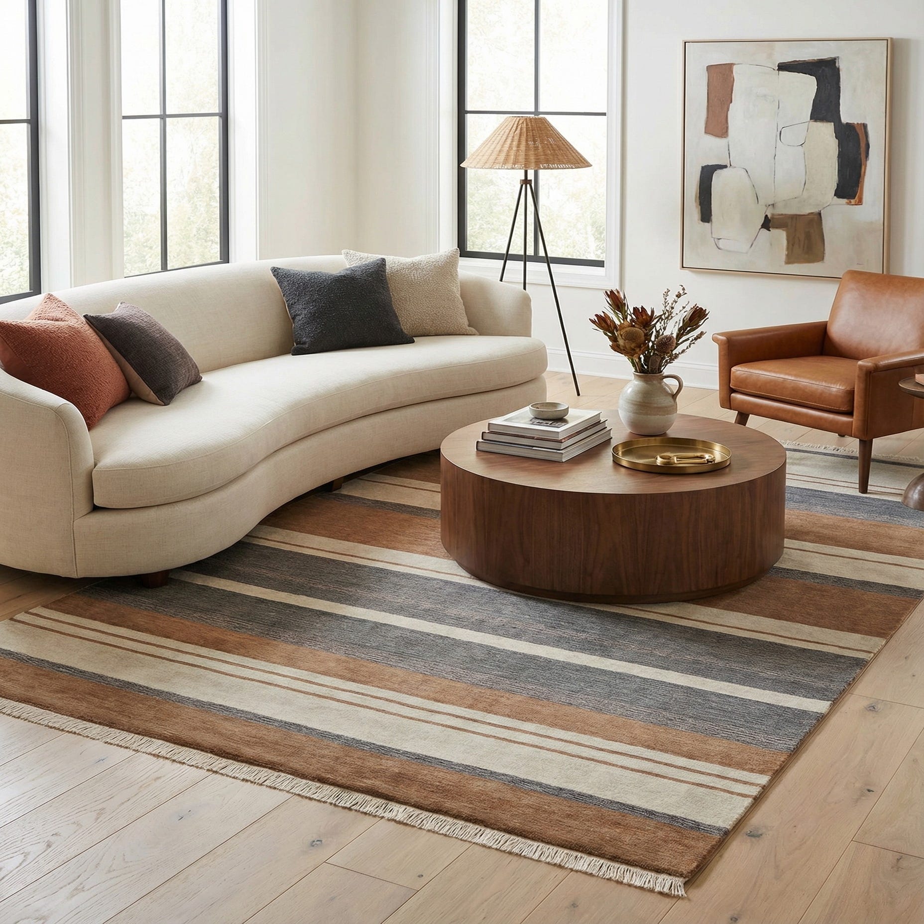 Primary color is Multi. Colors in this rug include: Multi, Brown, Gray, Light Brown, Tan, Beige.