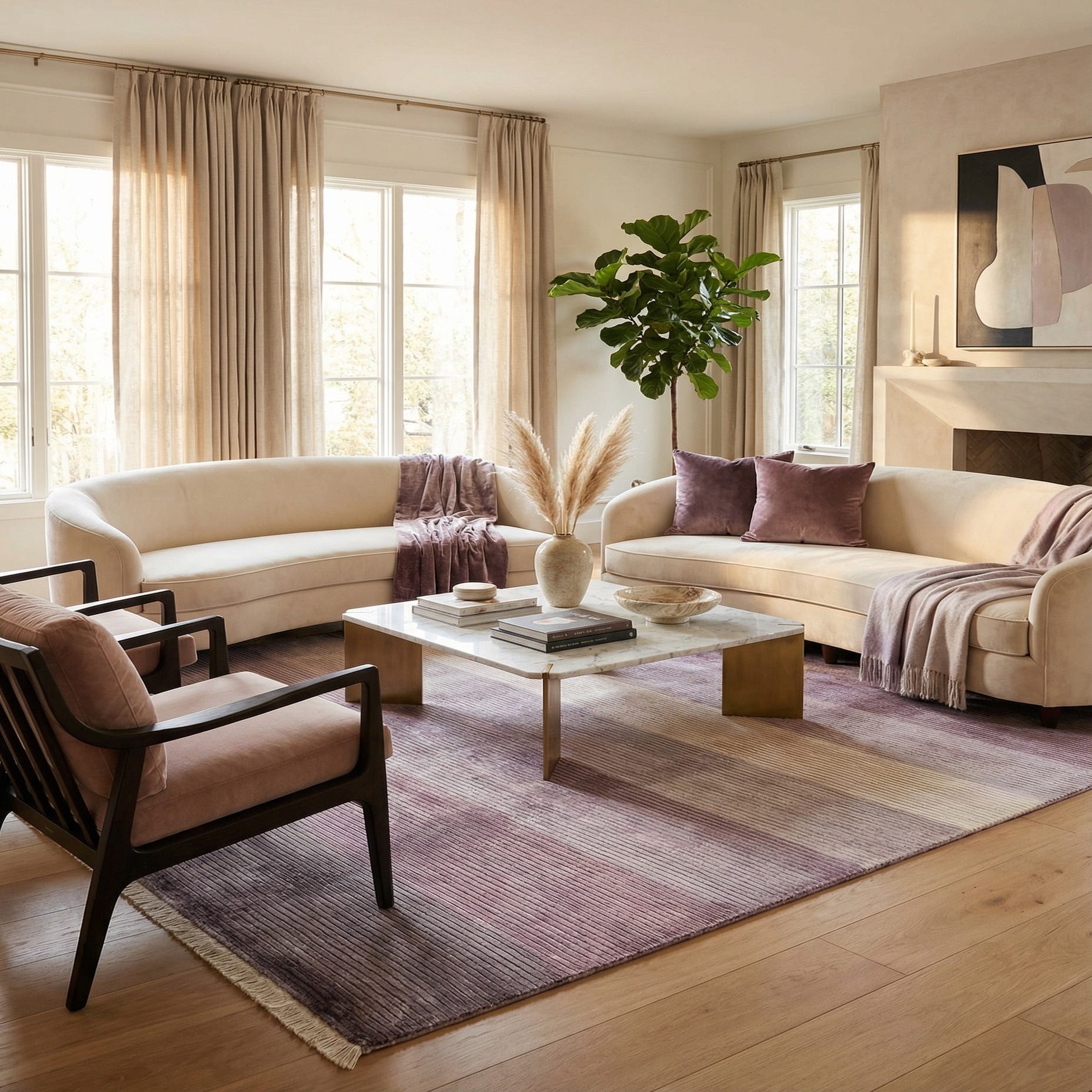 Primary color is Multi. Colors in this rug include: Multi, Cream, Gray, Light Brown, Plum Red, Purple, Tan, Ivory.