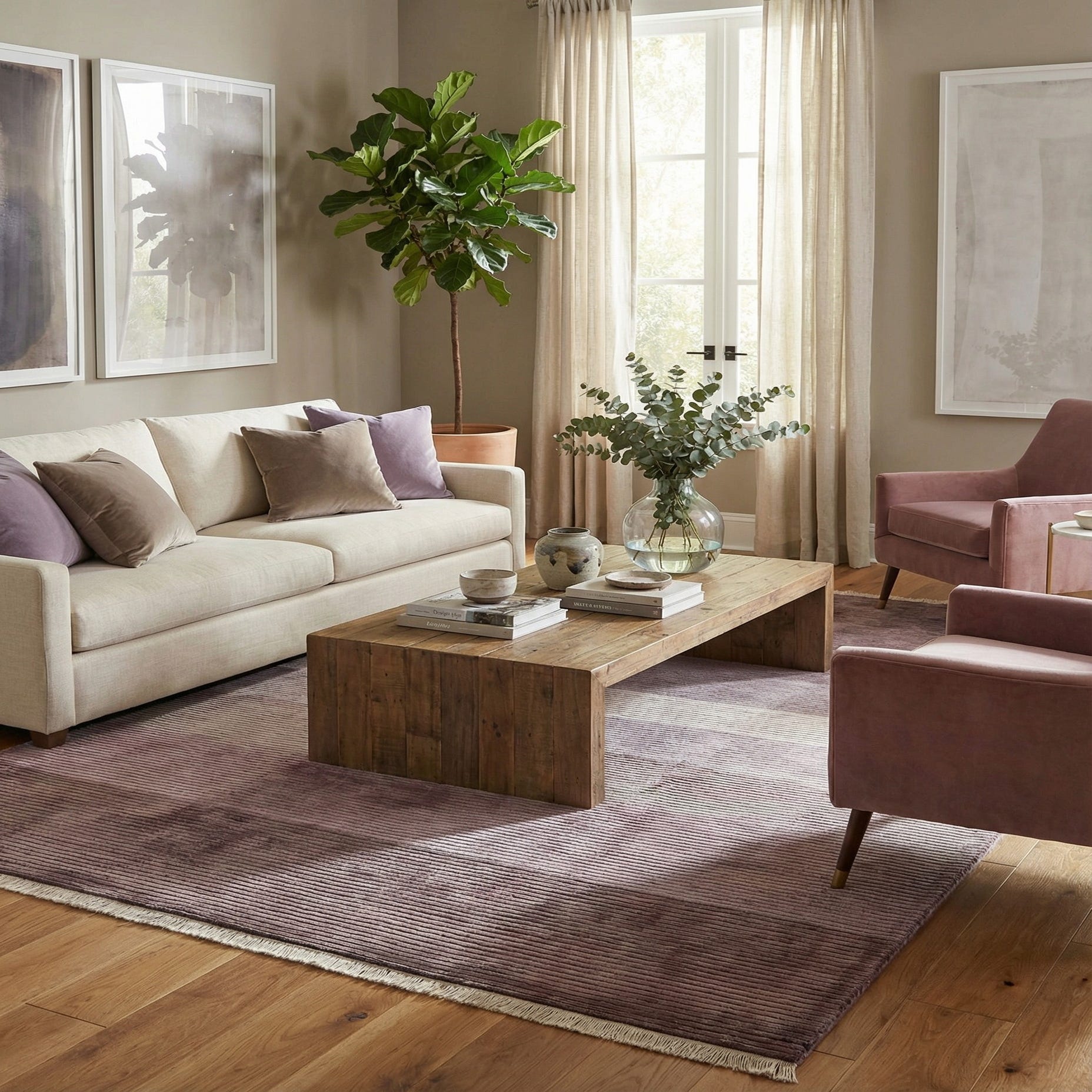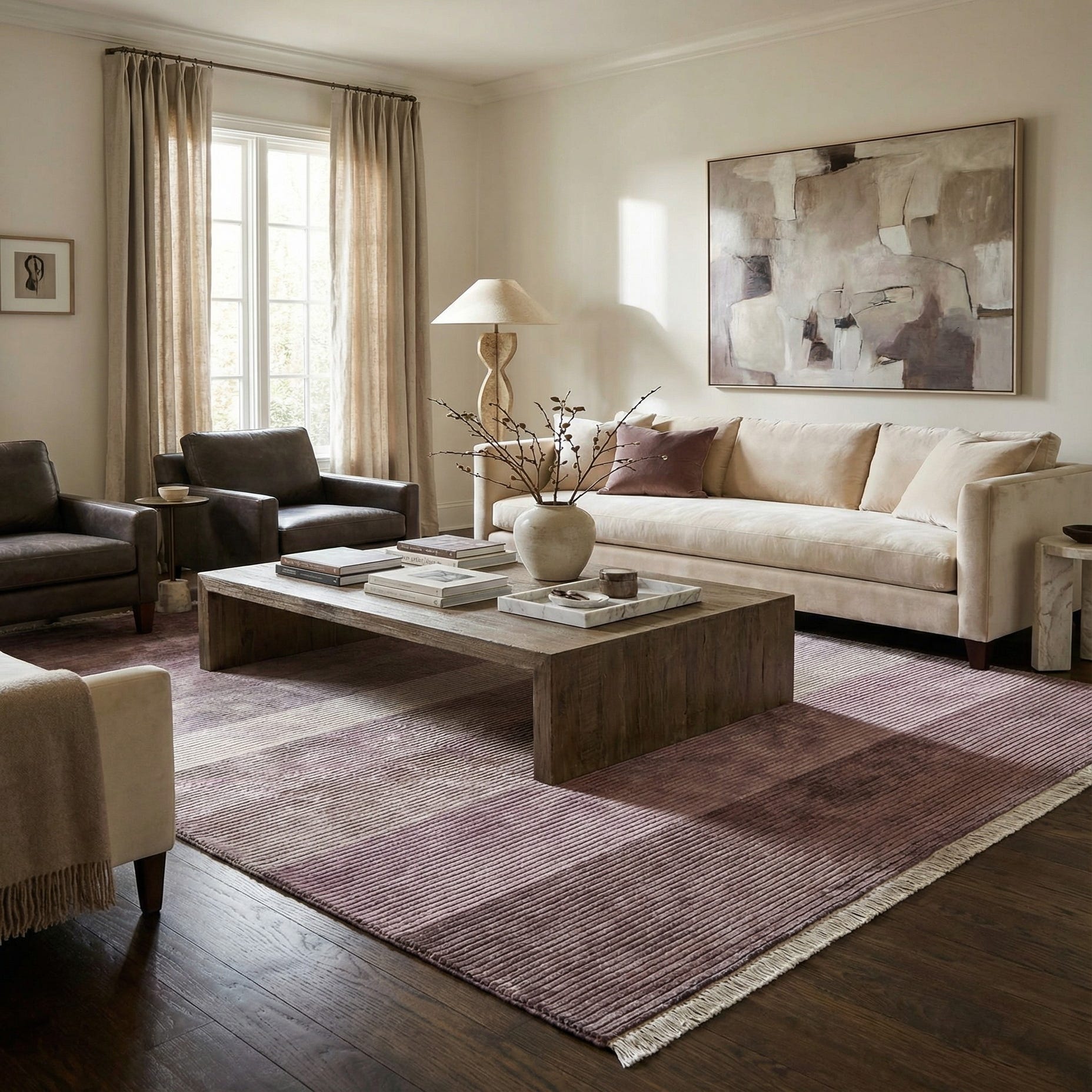 Primary color is Multi. Colors in this rug include: Multi, Gray, Ivory, Light Brown, Plum Red, Purple, Tan.