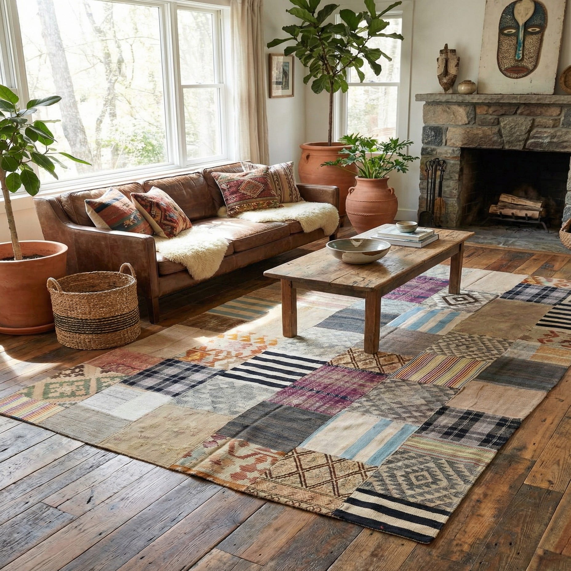 6' 7 x 10' 1 Hand Woven Kilim Patchwork Wool Rug