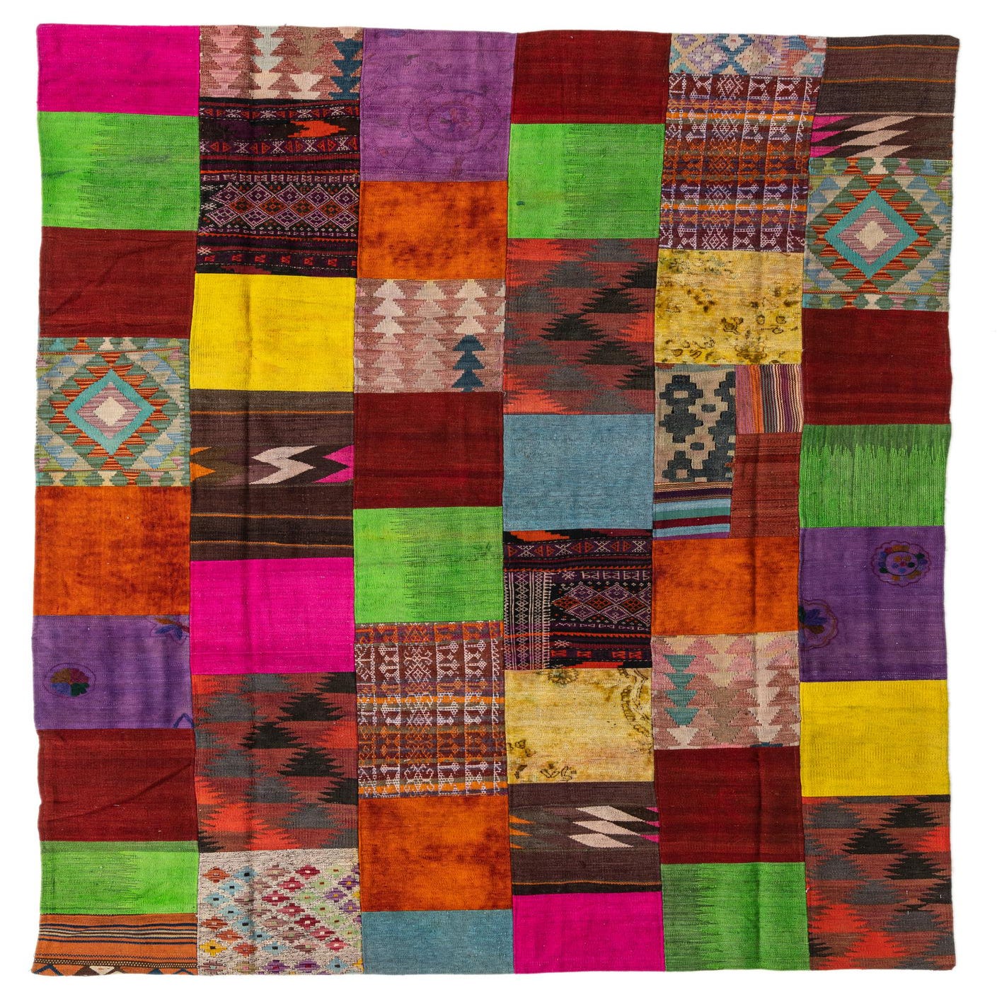 7' 4 x 9' 9 Hand Woven Kilim Patchwork Wool Rug
