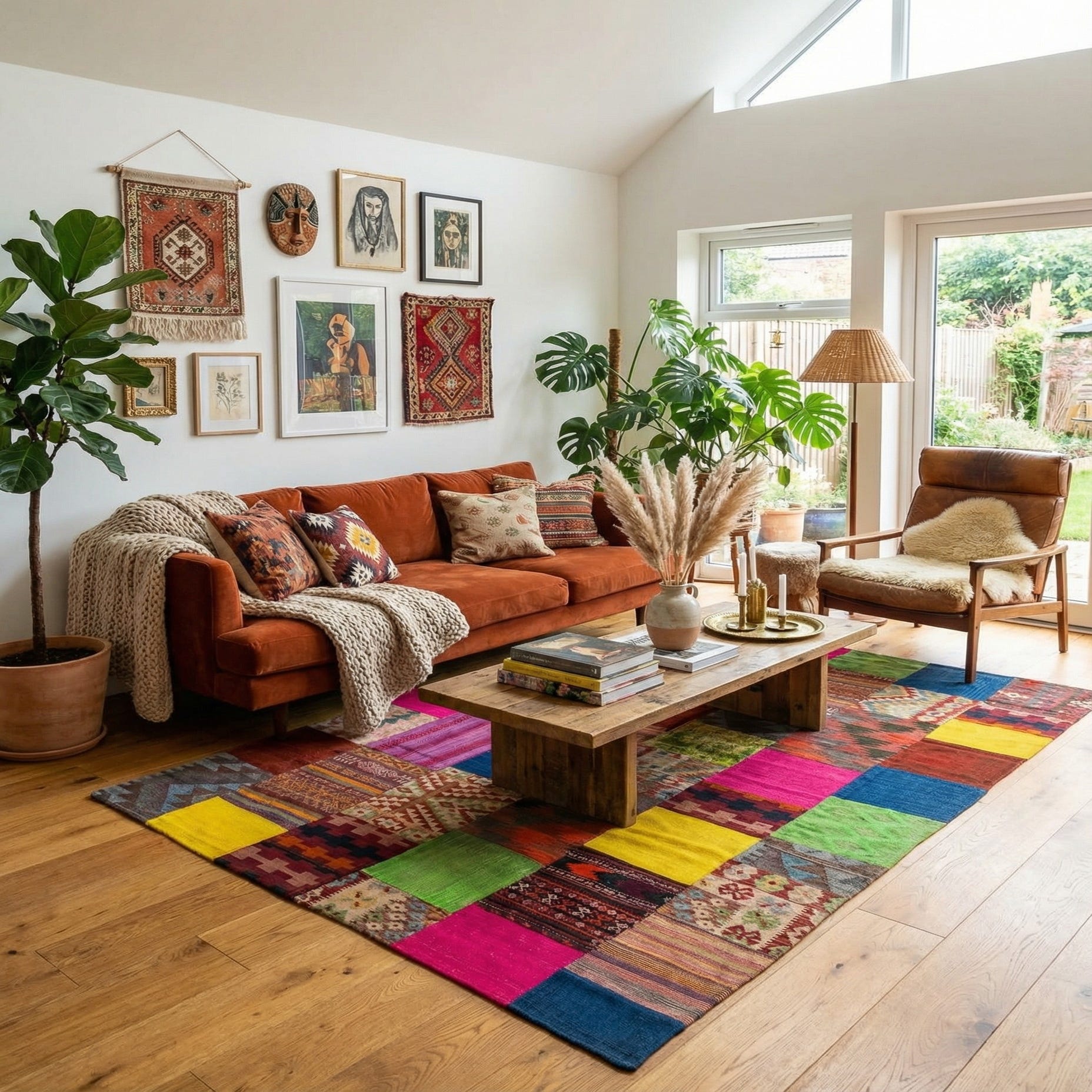 Primary color is Multi. Colors in this rug include: Multi, Beige, Black, Blue, Brown, Gray, Green, Orange, Red, Yellow, Purple, Pink.