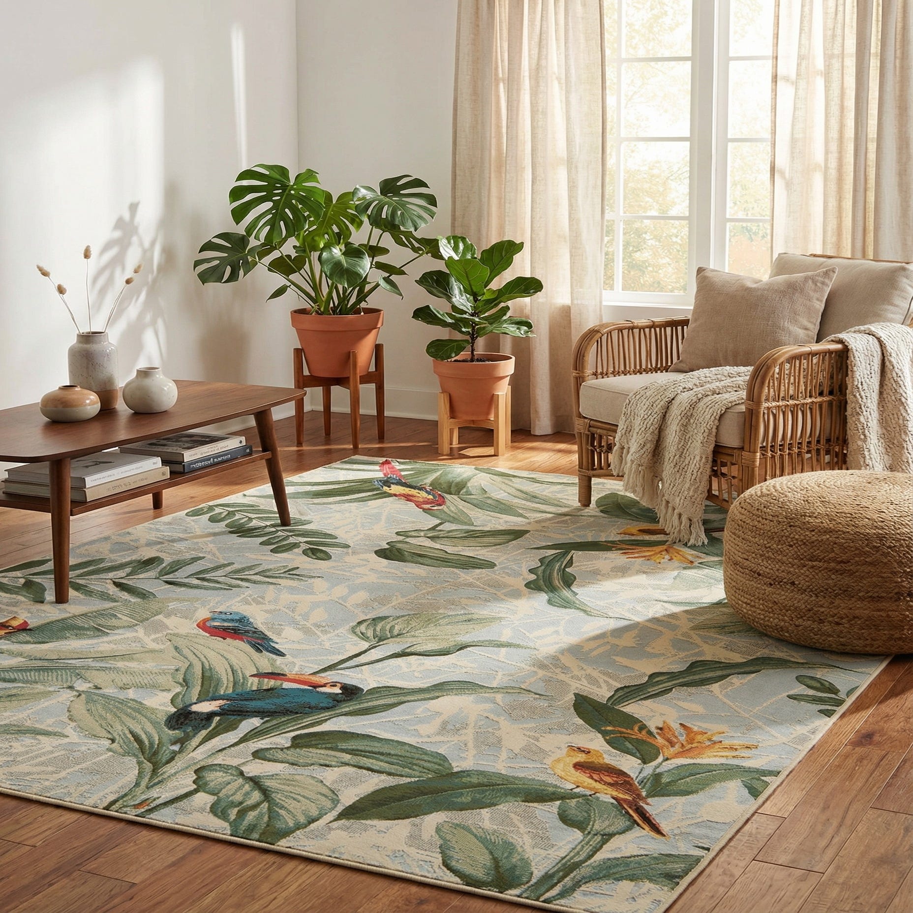 7' x 10' Washable Botanical Indoor / Outdoor Rug
