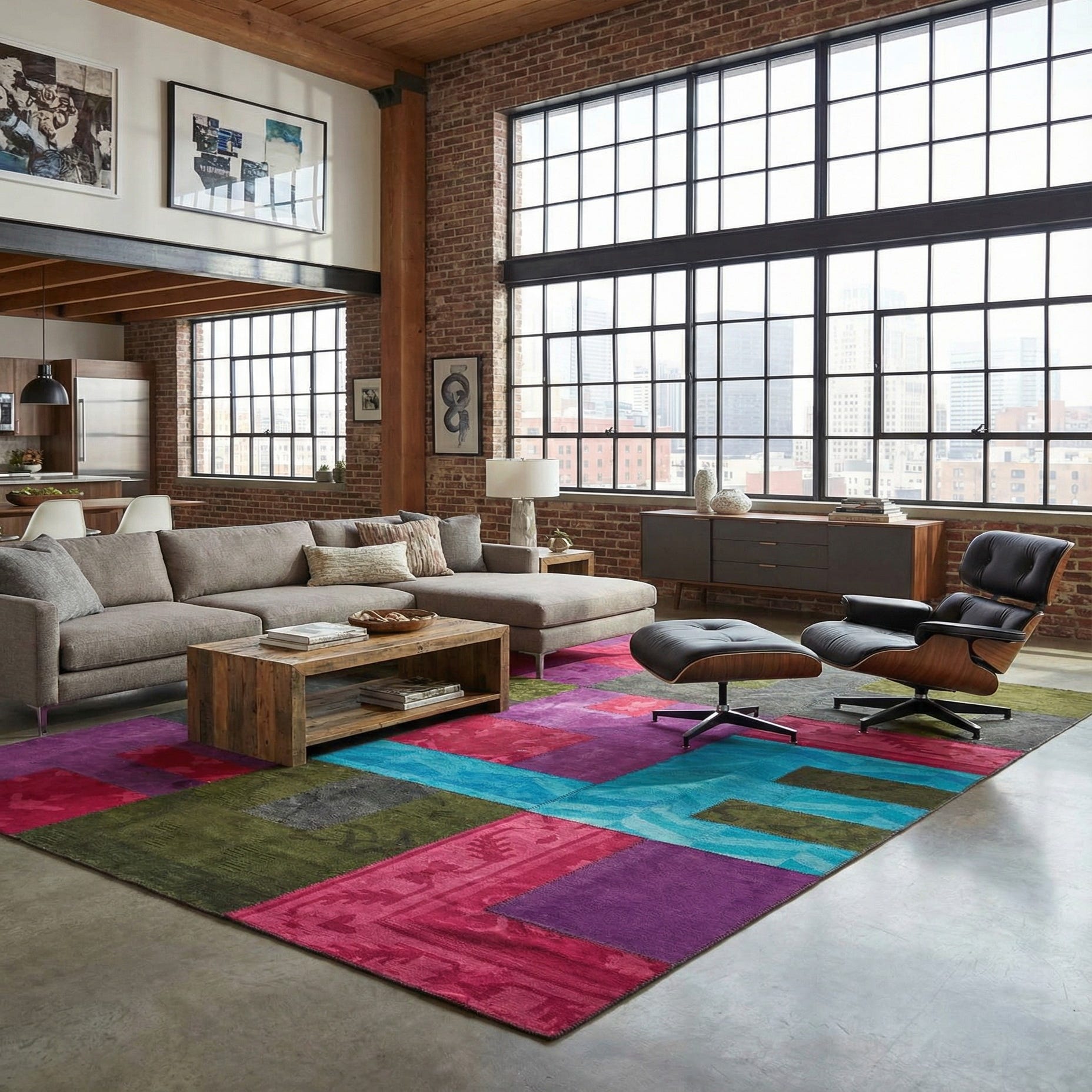 7' 3 x 10' Hand Woven Patchwork Wool Rug