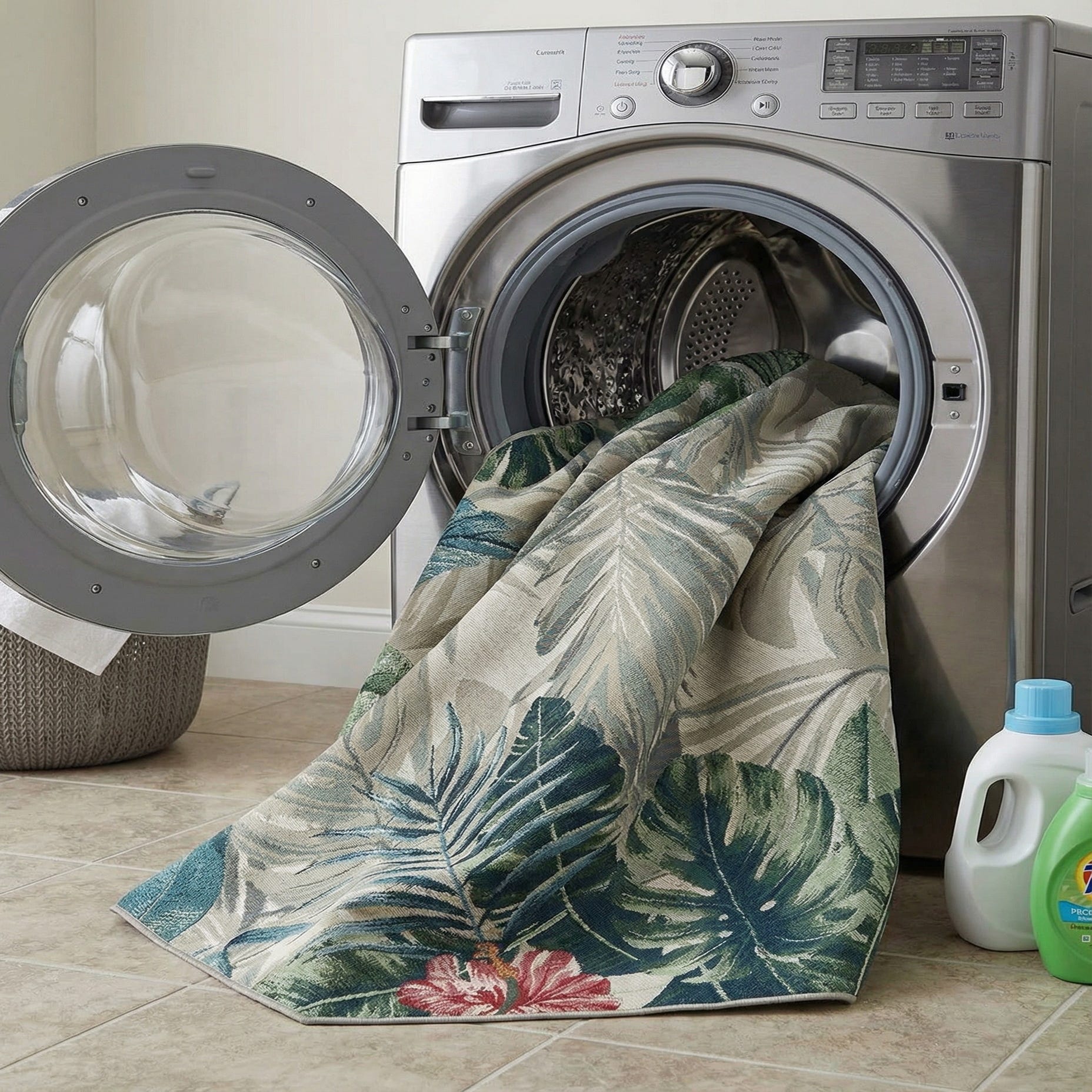 Detail image of 7' 10 x 7' 10  Washable Botanical Indoor / Outdoor Octagon Rug