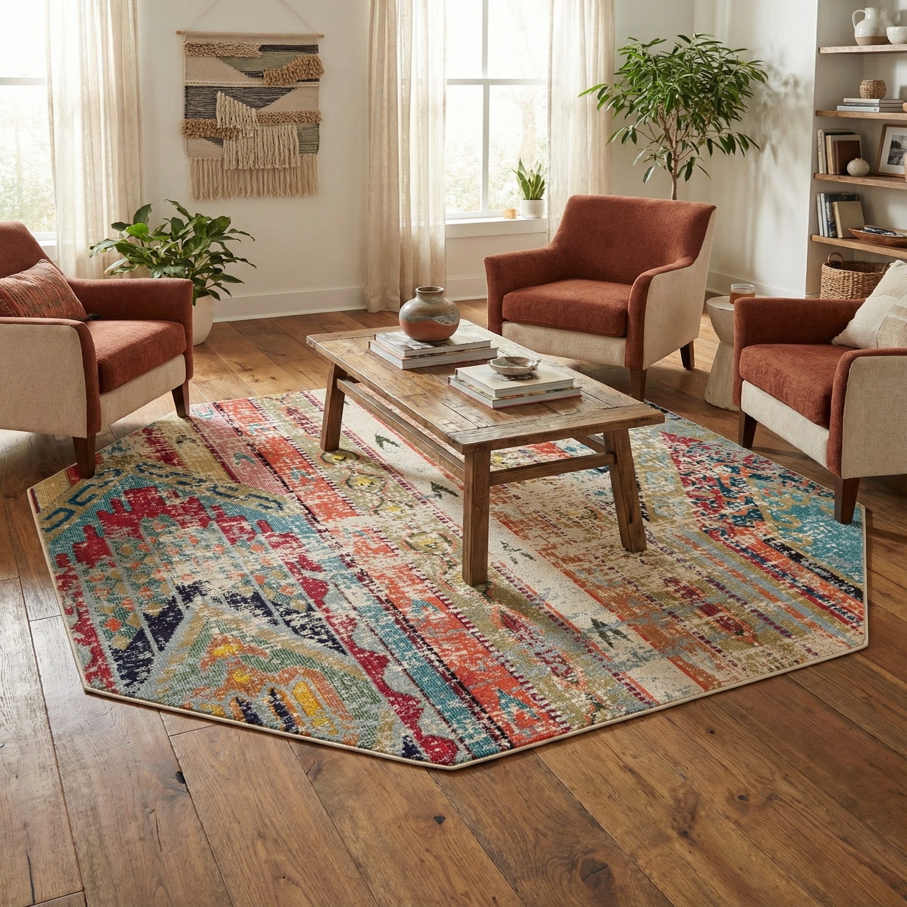 Primary image 8' x 8'  Washable Santa Fe Octagon Rug