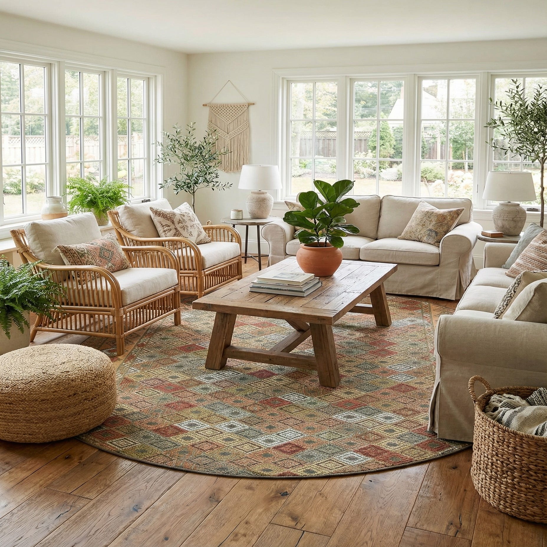 Primary image 7' 10 x 7' 10  Washable Baja Indoor / Outdoor Round Rug