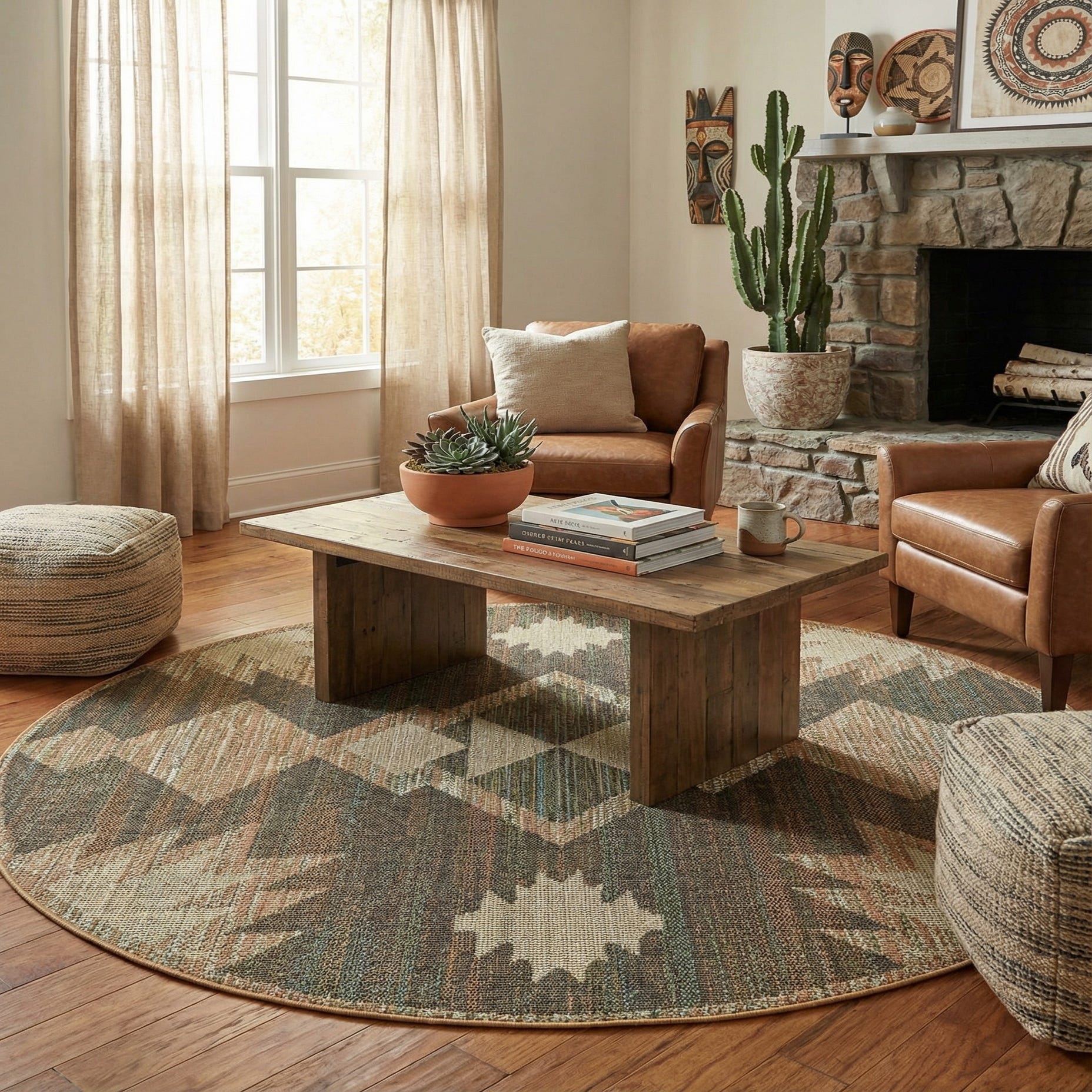 7' 10 x 7' 10 Washable Baja Indoor / Outdoor Round Rug