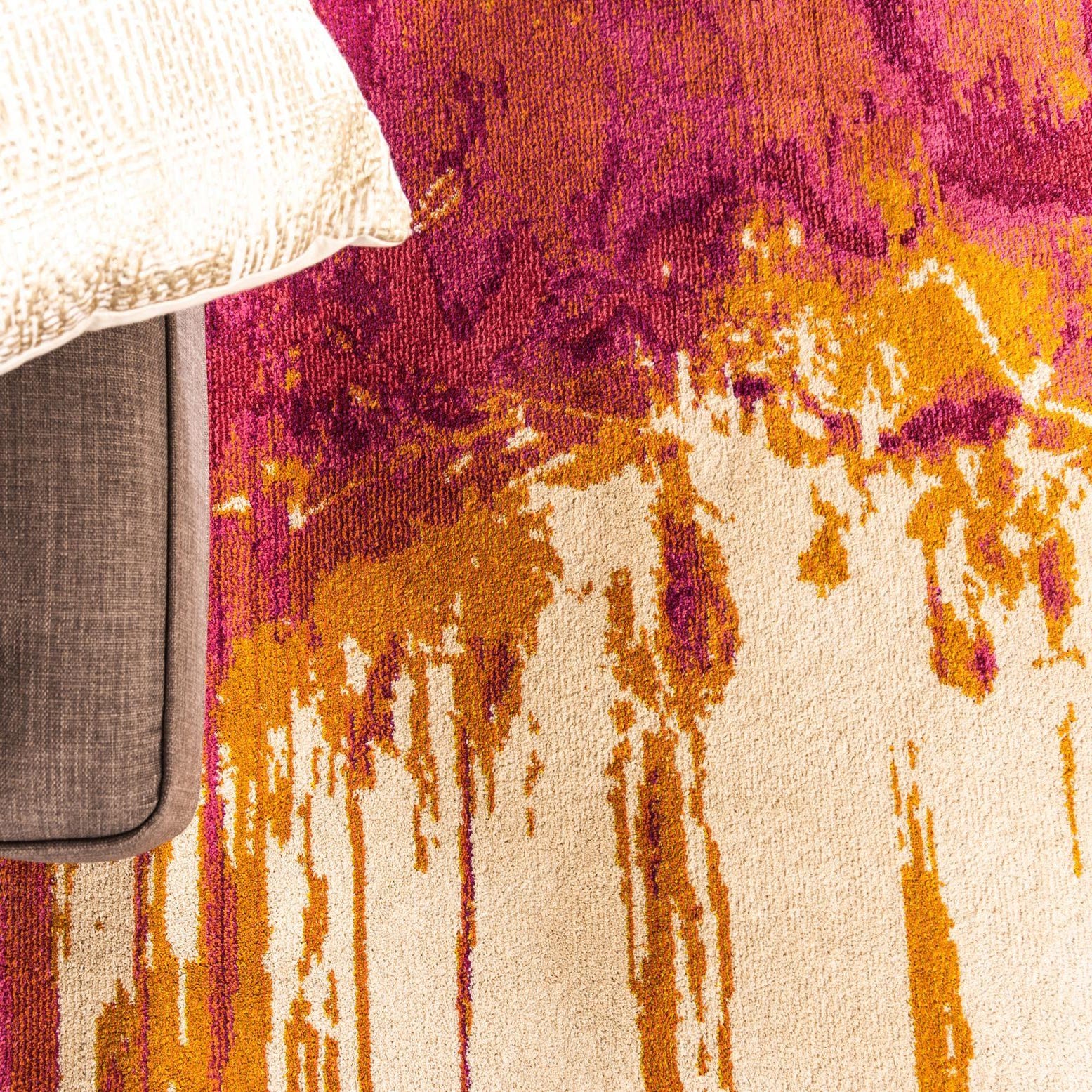 Primary color is Multi. Colors in this rug include: Multi, Cream, Orange, Puce, Violet, Pink, Gold.
