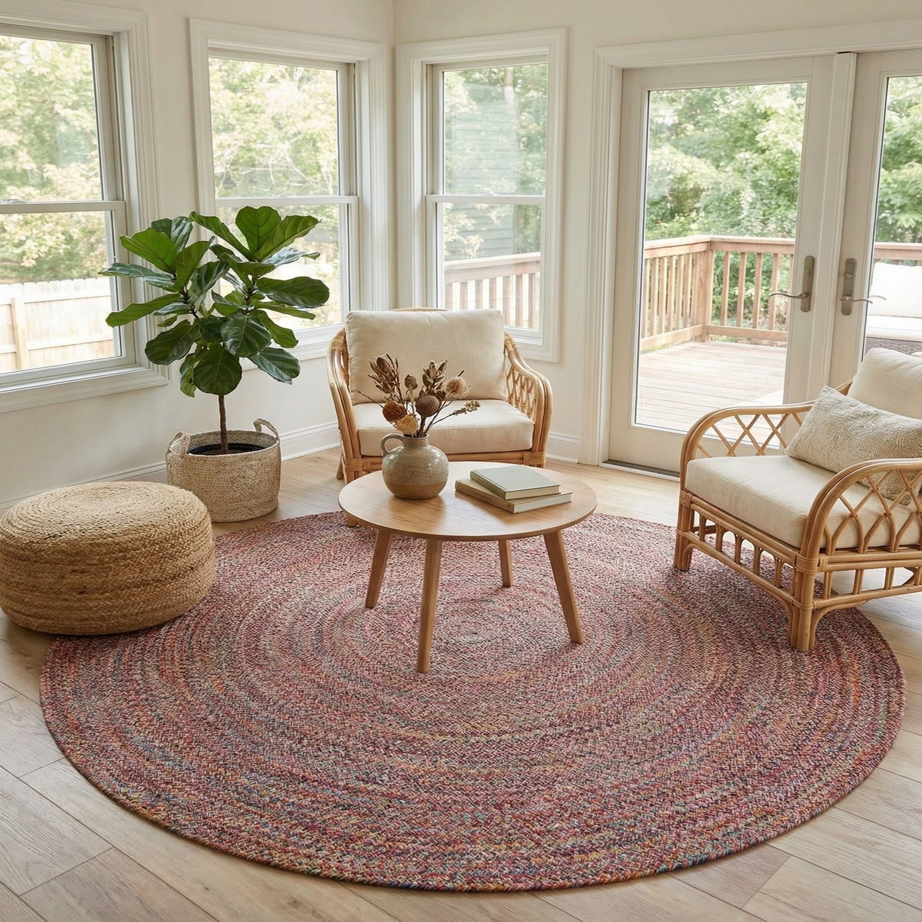 7' 10 x 7' 10 Hand Woven Eco Verse Washable Indoor / Outdoor Round Rug
