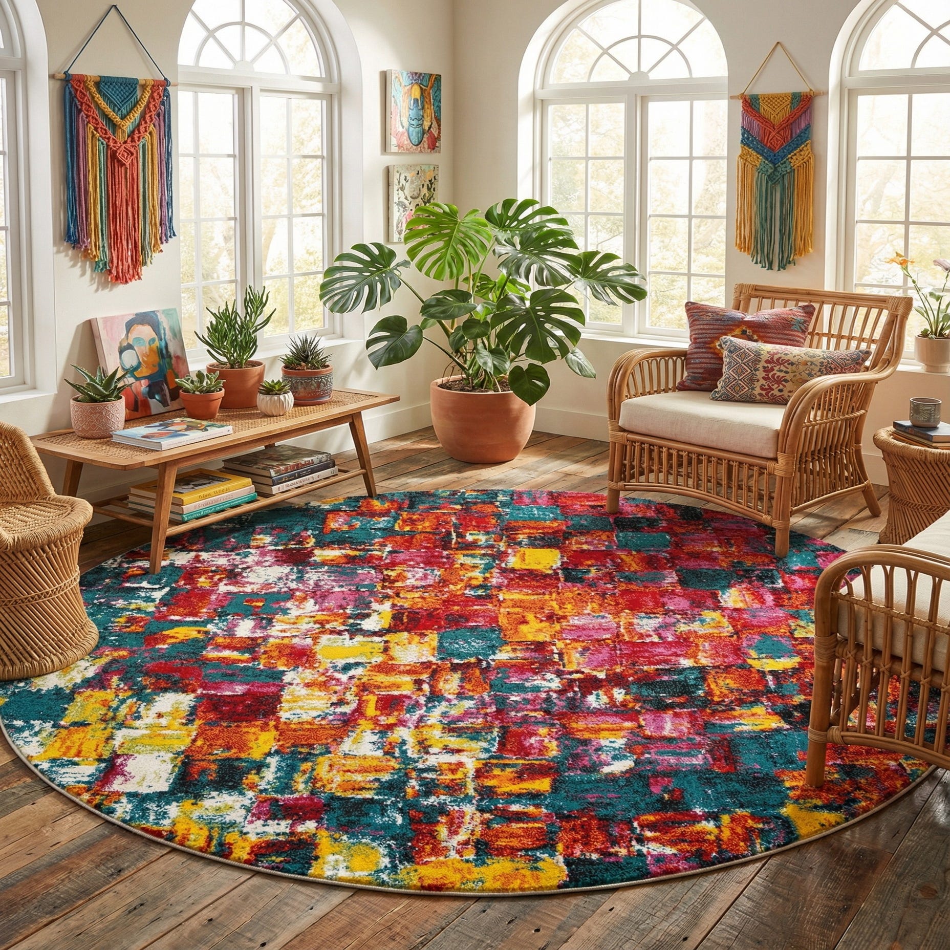 Primary color is Multi. Colors in this rug include: Multi, Blue, Green, Ivory, Navy Blue, Orange, Red, Yellow, Pink.