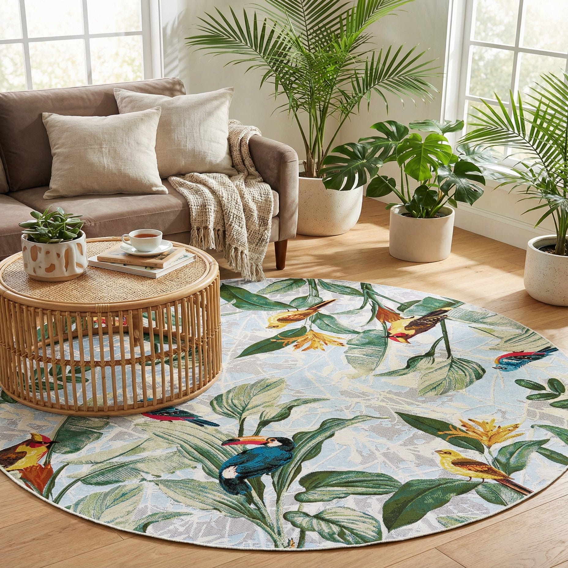 Detail image of 7' 10 x 7' 10  Washable Botanical Indoor / Outdoor Round Rug