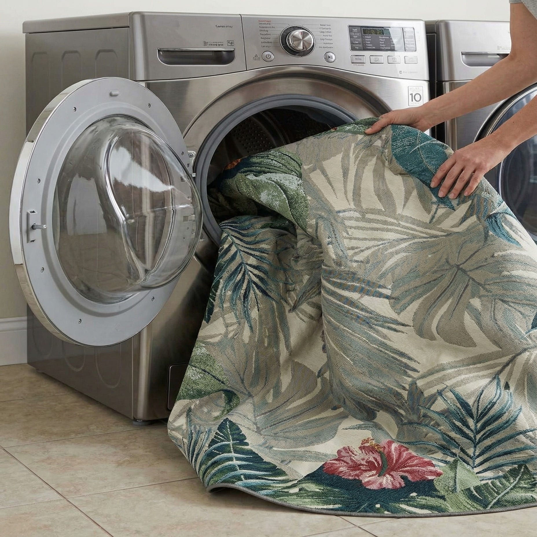 7' 10 x 7' 10 Washable Botanical Indoor / Outdoor Round Rug