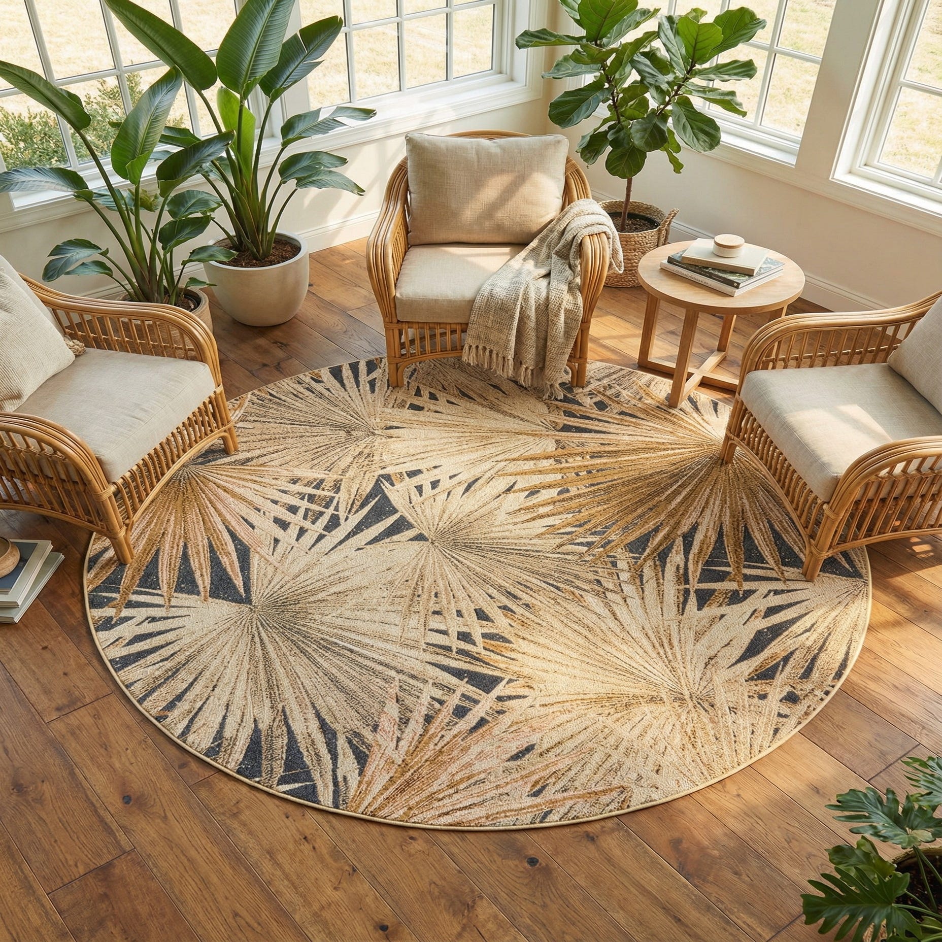 Primary image 7' 10 x 7' 10  Washable Botanical Indoor / Outdoor Round Rug