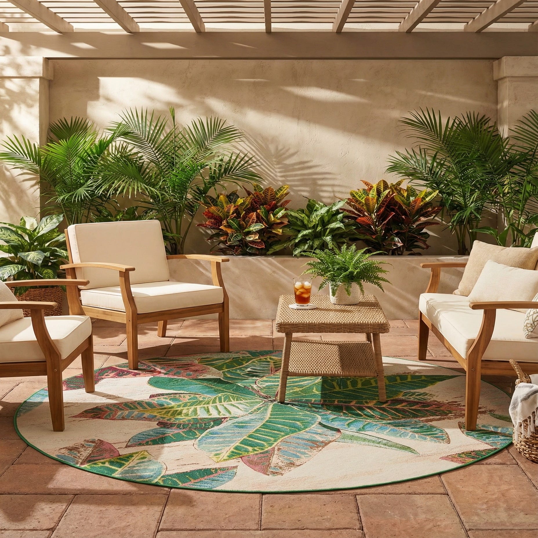 Detail image of 7' 10 x 7' 10  Washable Botanical Indoor / Outdoor Round Rug
