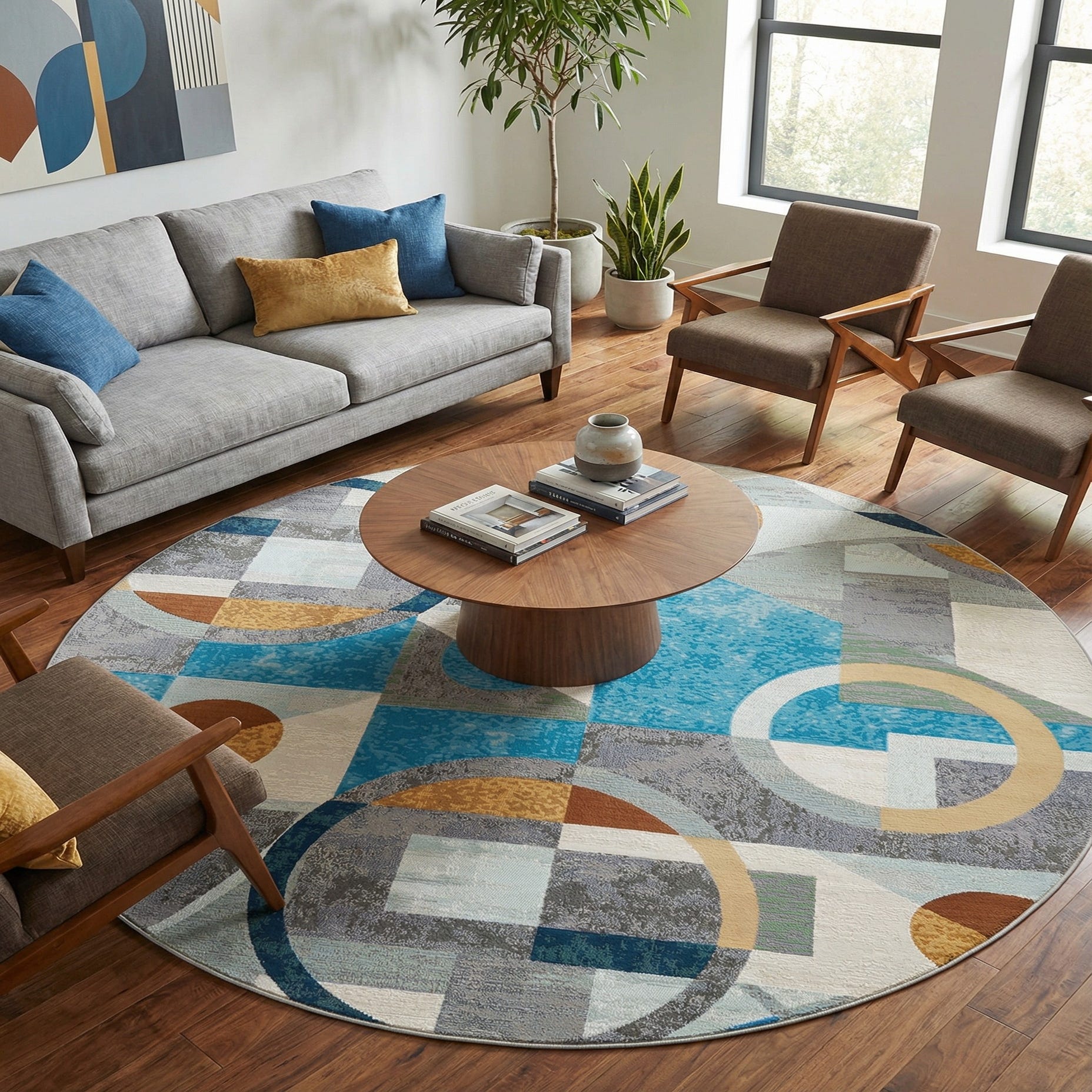 Primary image 7' 10 x 7' 10  Washable Modern Indoor / Outdoor Round Rug