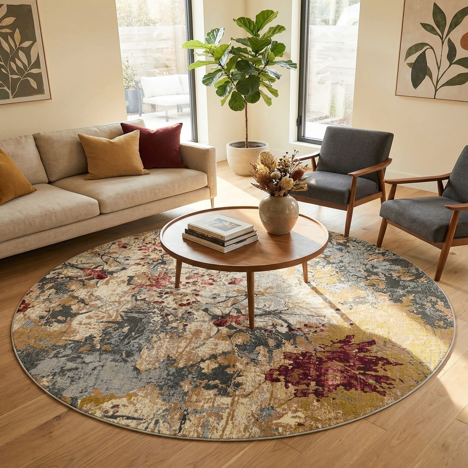 Primary image 7' 10 x 7' 10  Washable Modern Indoor / Outdoor Round Rug