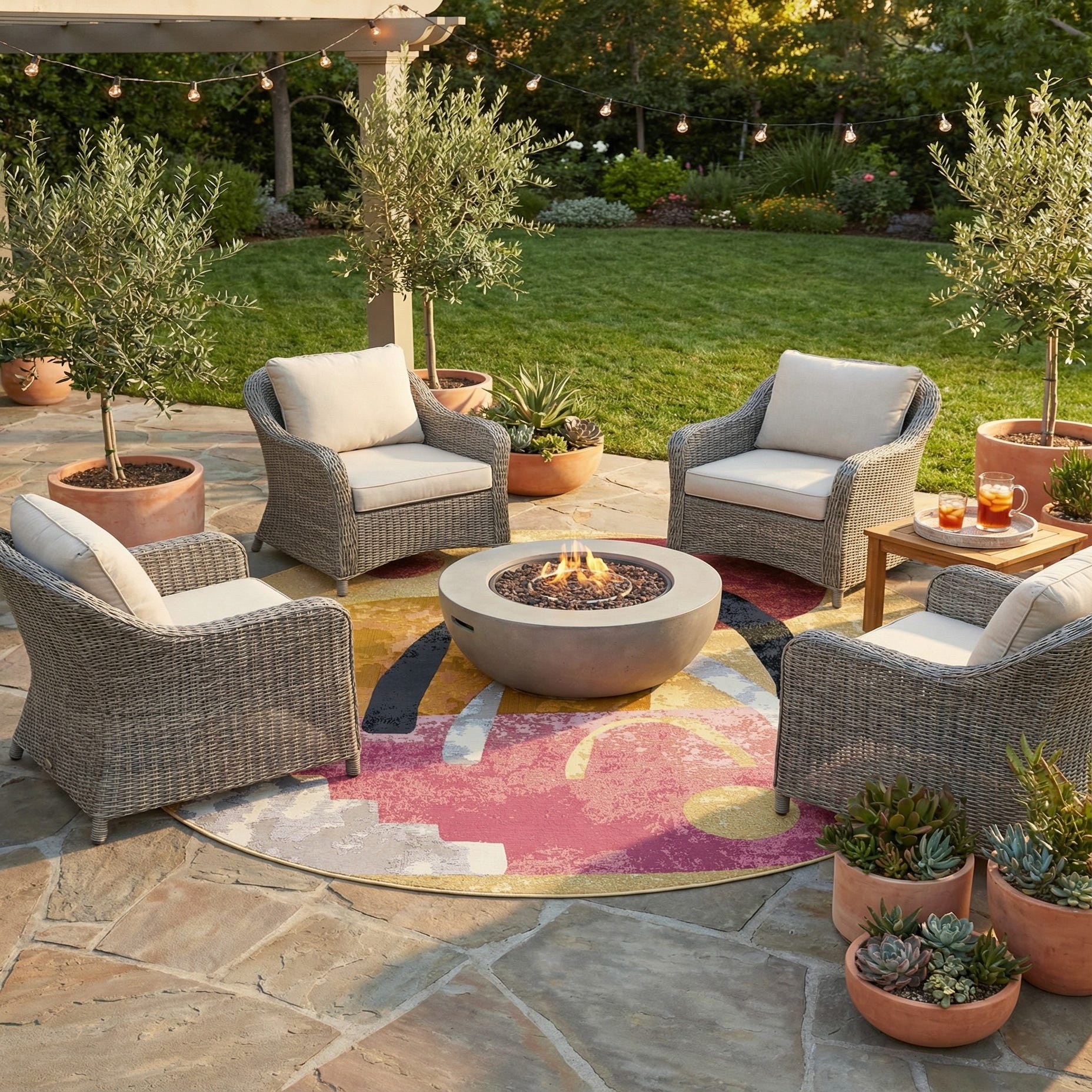 7' 10 x 7' 10 Washable Modern Indoor / Outdoor Round Rug