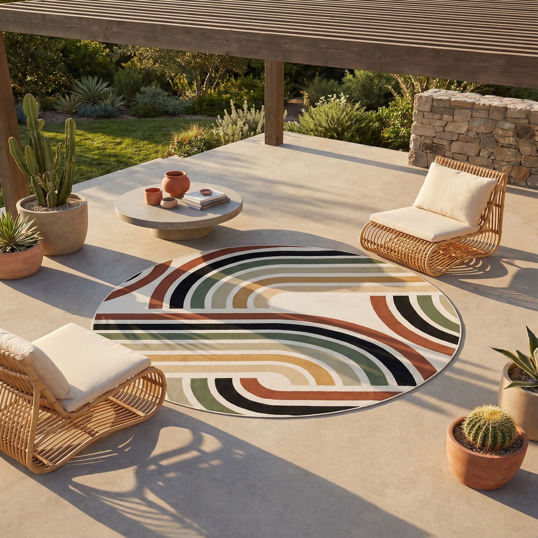 7' 10 x 7' 10 Easy-Clean Modern Indoor / Outdoor Round Rug