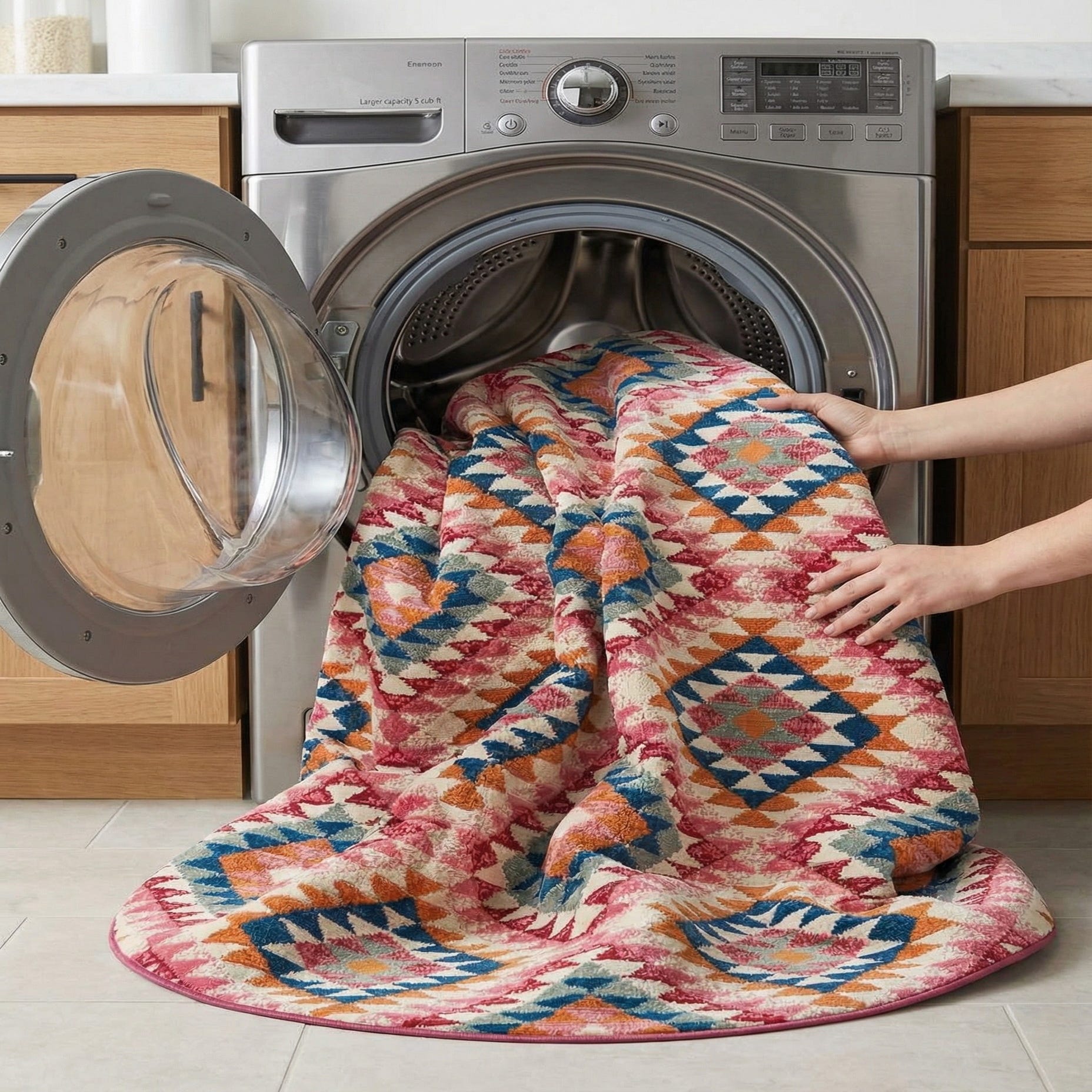 7' 10 x 7' 10 Washable Southwestern Indoor / Outdoor Round Rug