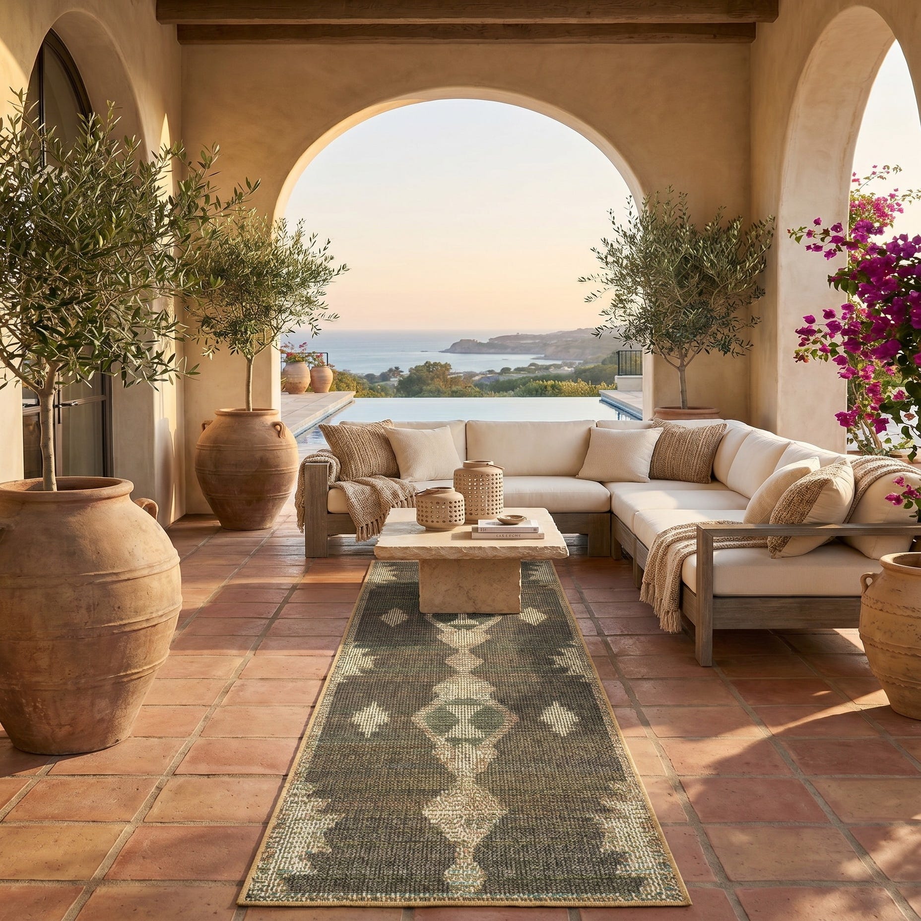 Got this rug for my covered porch. My hack is to steam all my rugs instead of waiting for them to fatten. It looks better than I expected I would use it inside as well.