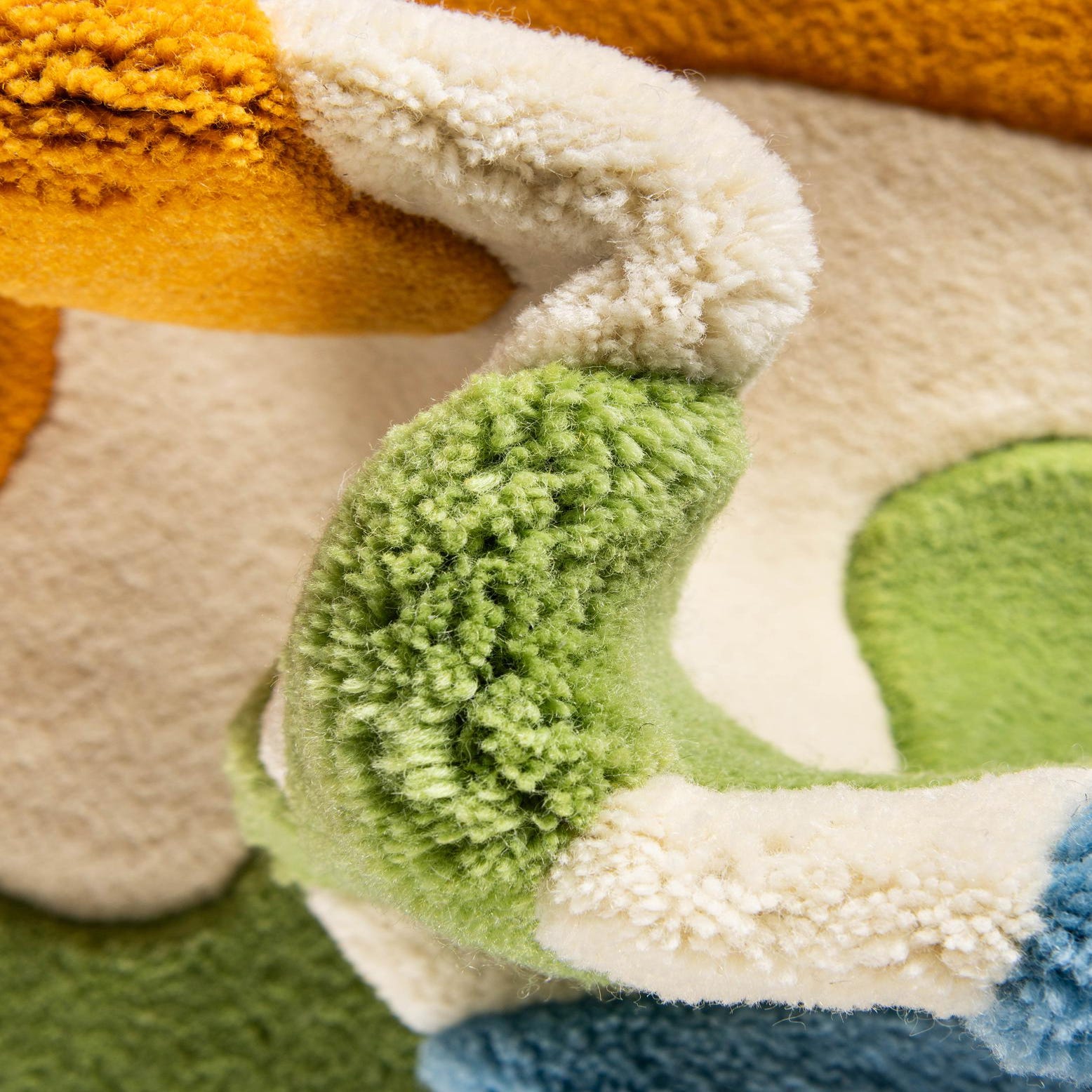 Primary color is Multi. Colors in this rug include: Multi, Green, Ivory, Light Blue, Yellow, Pink.