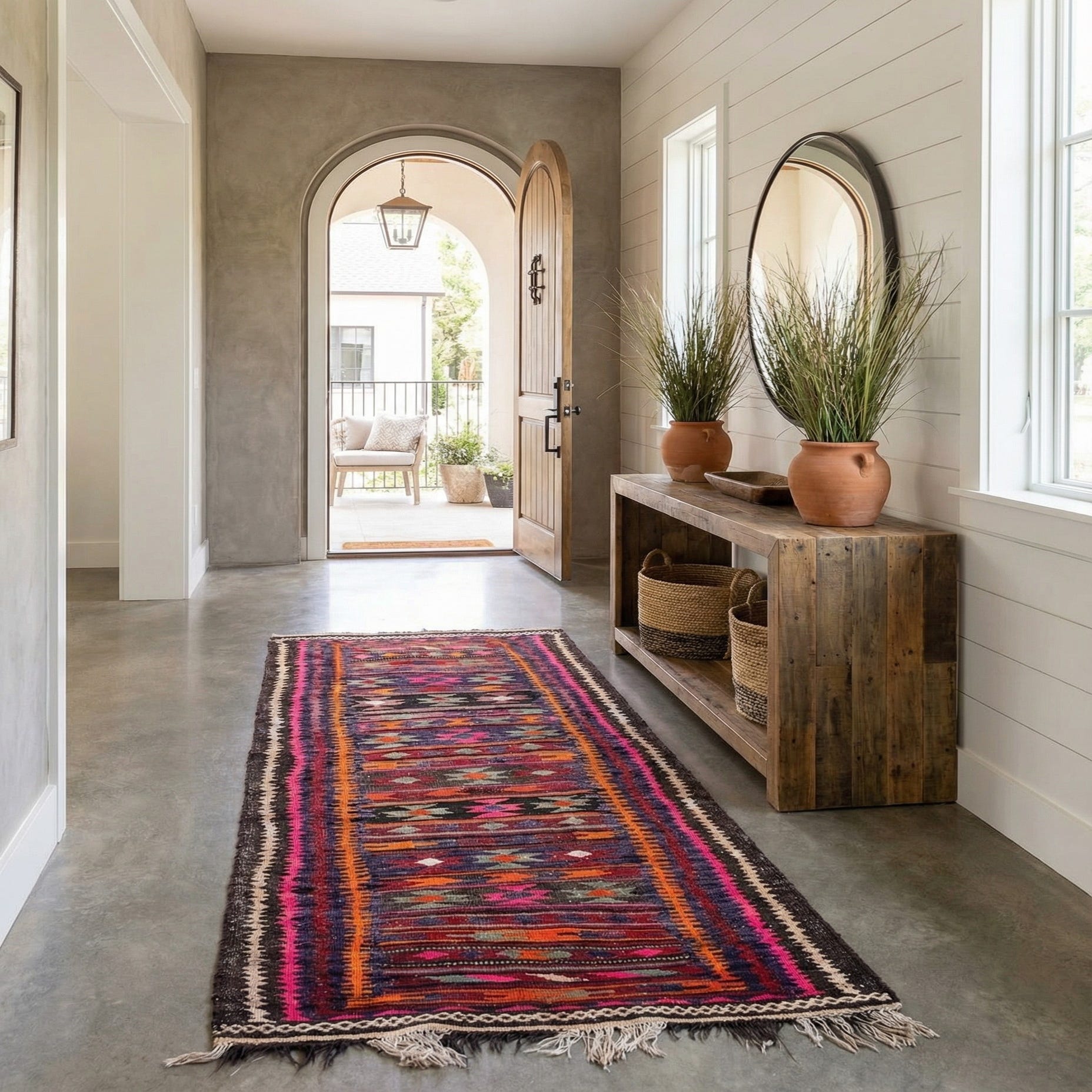 4' 2 x 8' Hand Woven Kilim Fars Wool Runner Rug