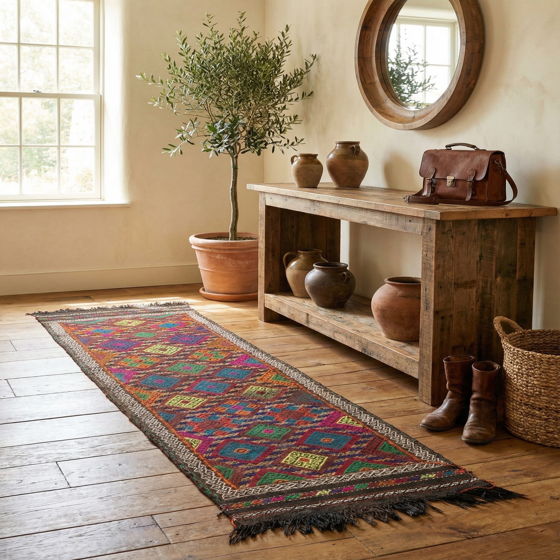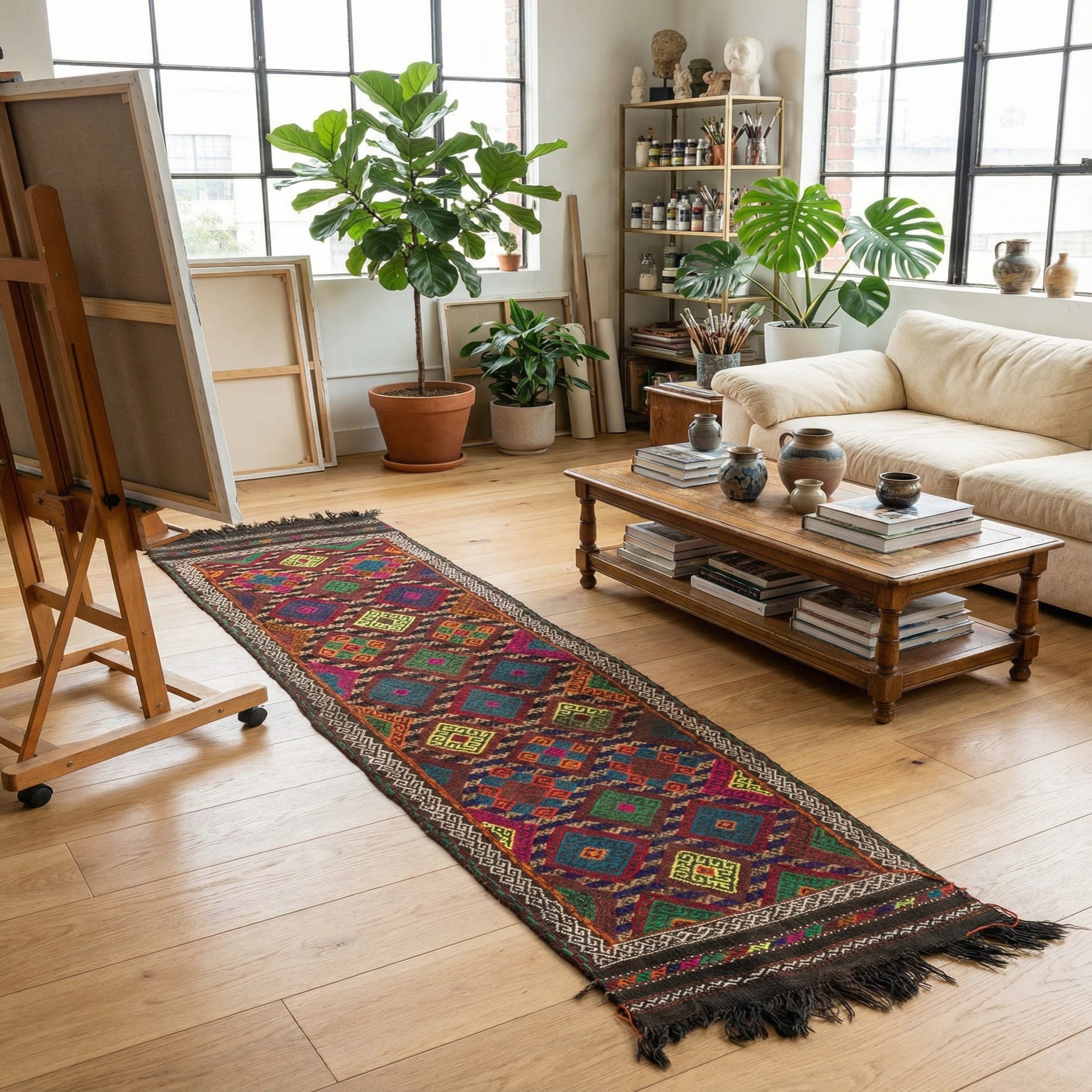 2' 2 x 7' 10 Hand Knotted Kilim Fars Persian Wool Runner Rug