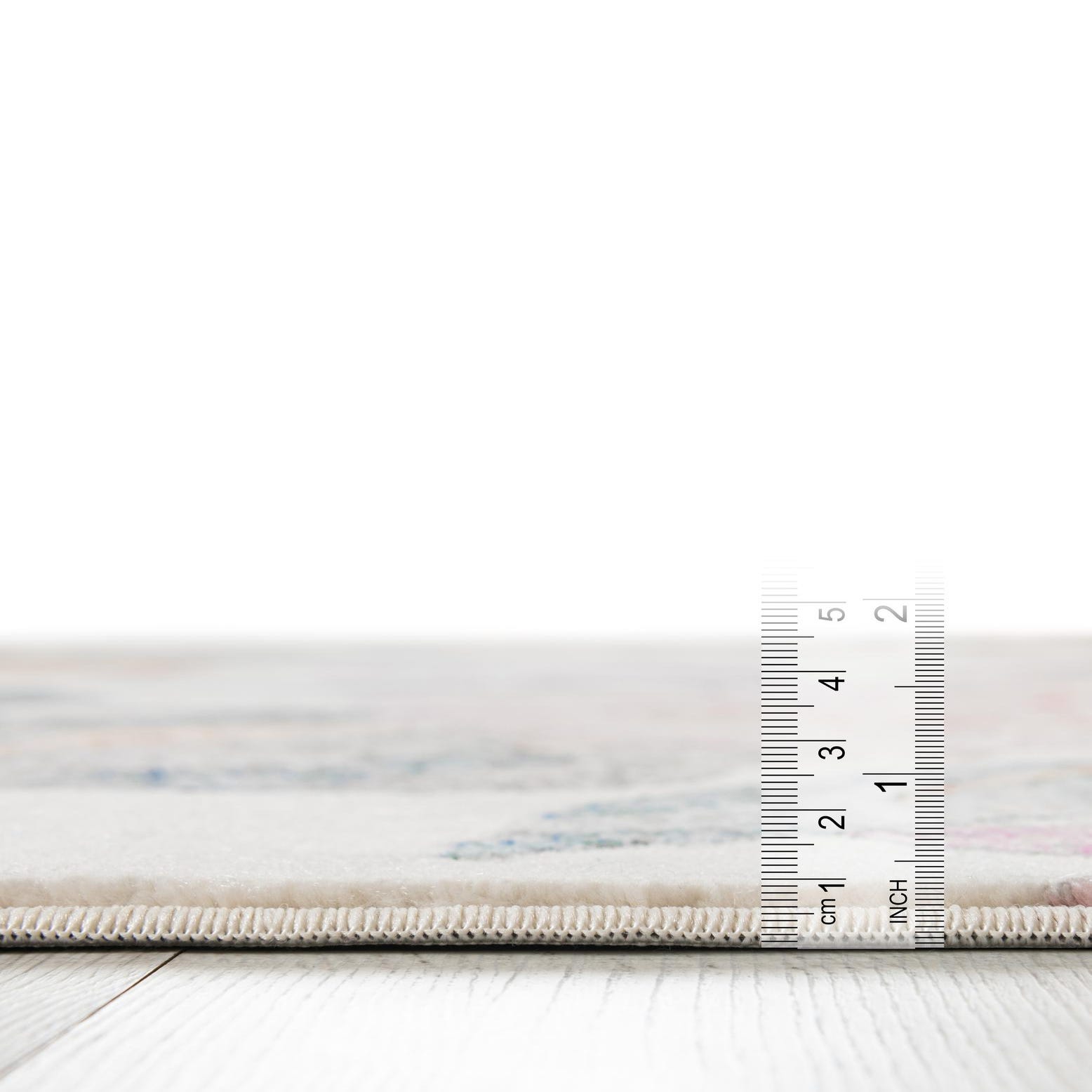 Primary color is Multi. Colors in this rug include: Multi, Black, Gray, Green, Ivory, Yellow, Pink.