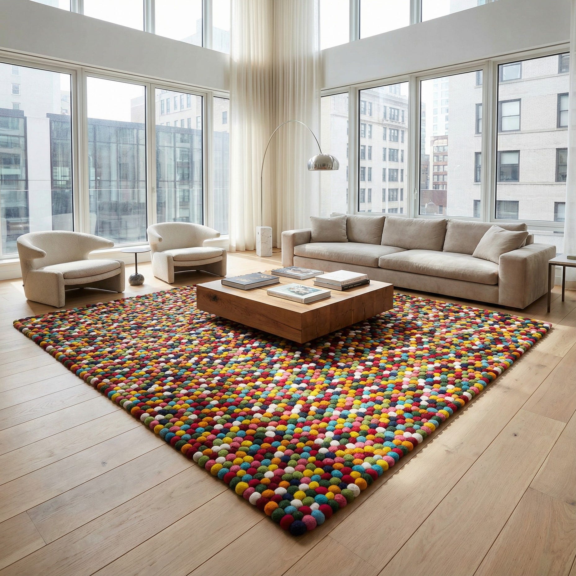 7' 10 x 7' 10 Felt Ball Wool Square Rug