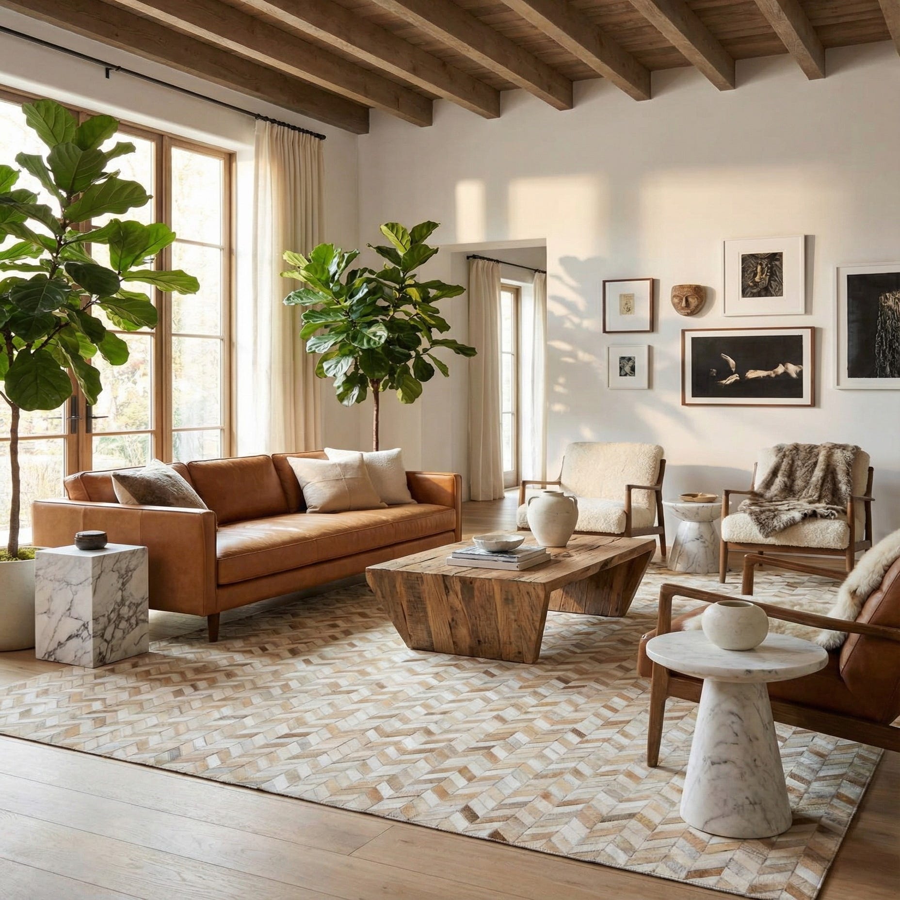 Primary image 8' 1 x 10' Cowhide Leather Rug