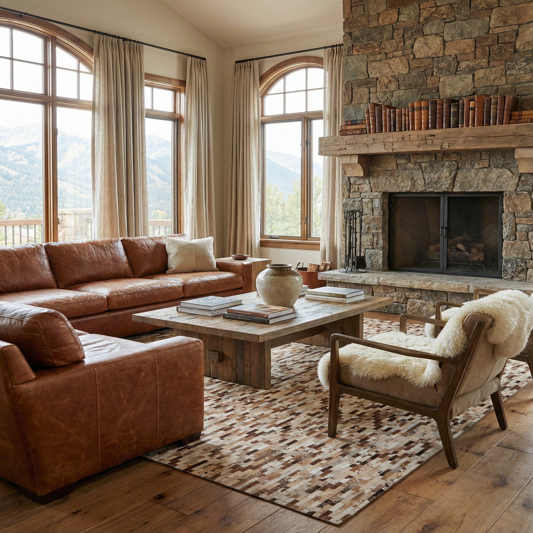 Detail image of 8' 1 x 9' 10 Cowhide Leather Rug