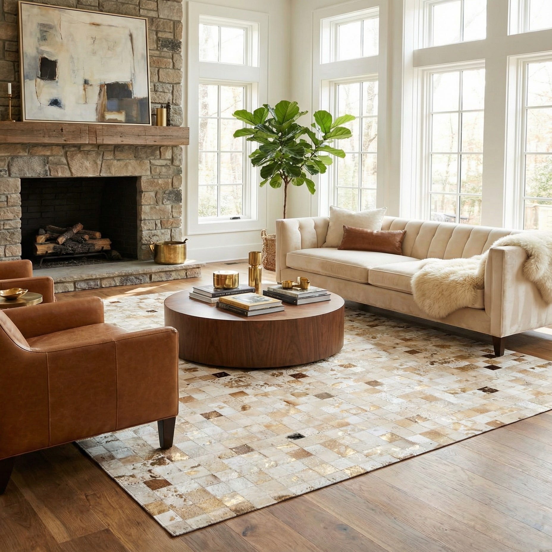 Detail image of 8' x 9' 9 Cowhide Stocks Rug