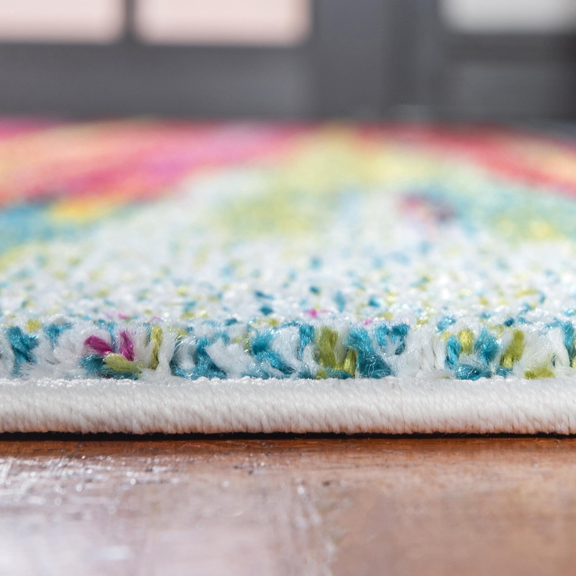 Primary color is Multi. Colors in this rug include: Multi, Blue, Green, Orange, Red, Yellow, Pink, Navy Blue.