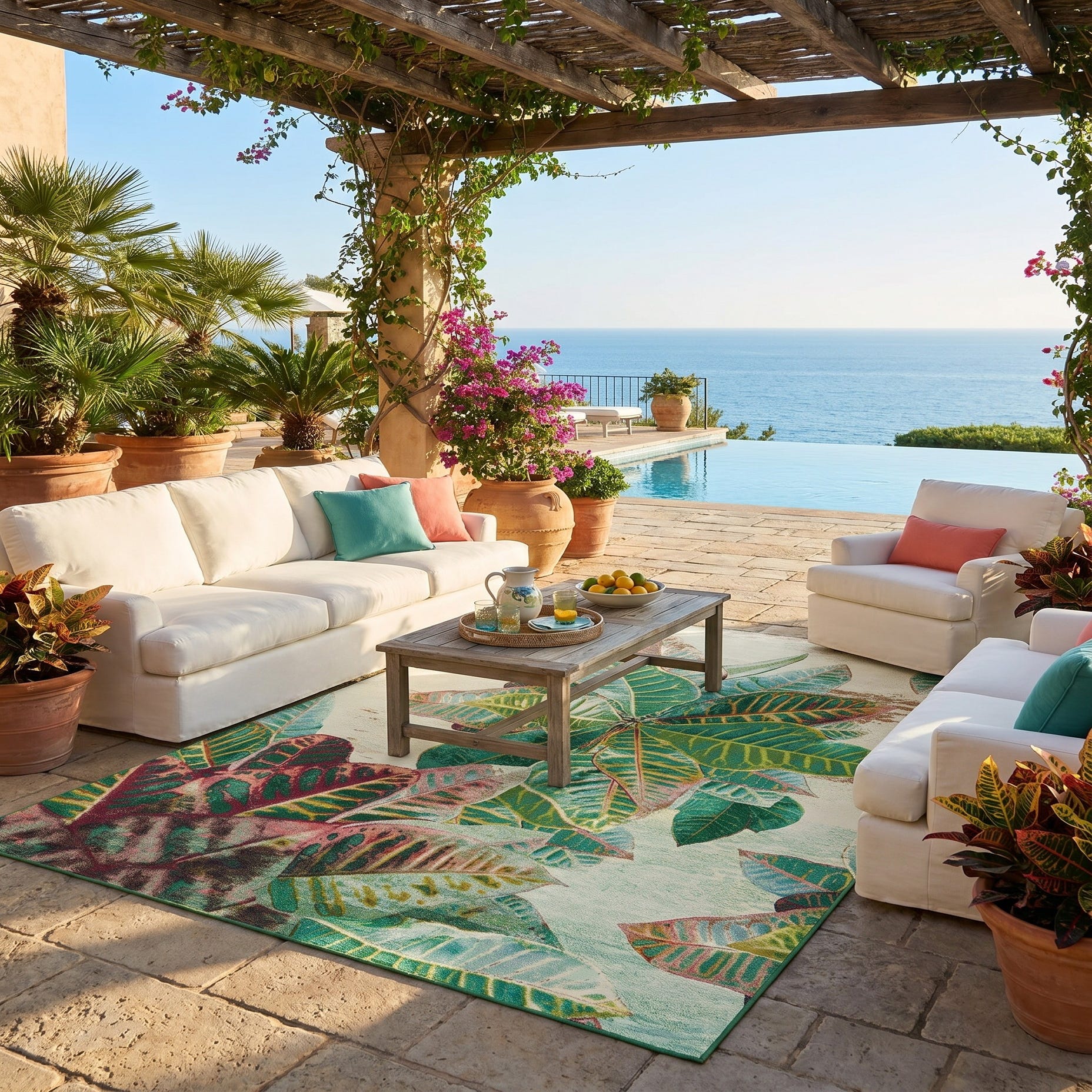 7' 10 x 10' Easy-Clean Botanical Indoor / Outdoor Rug