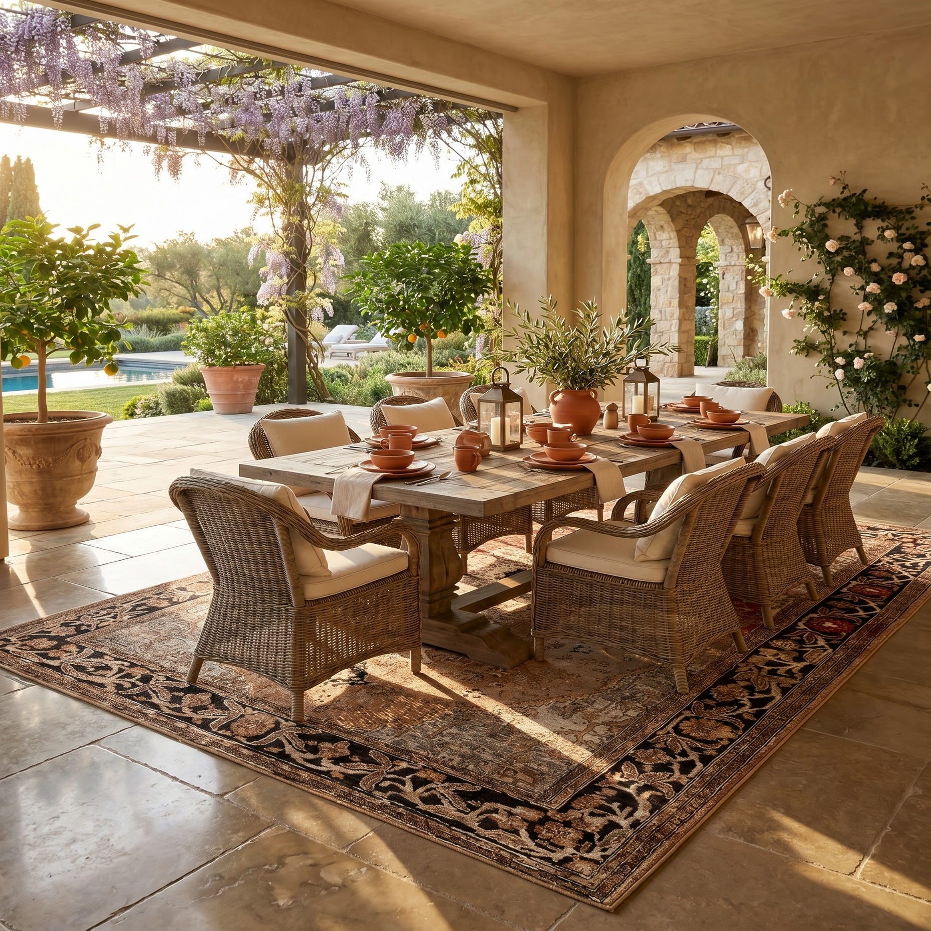 7' 10 x 10' Easy-Clean Traditional Indoor / Outdoor Rug