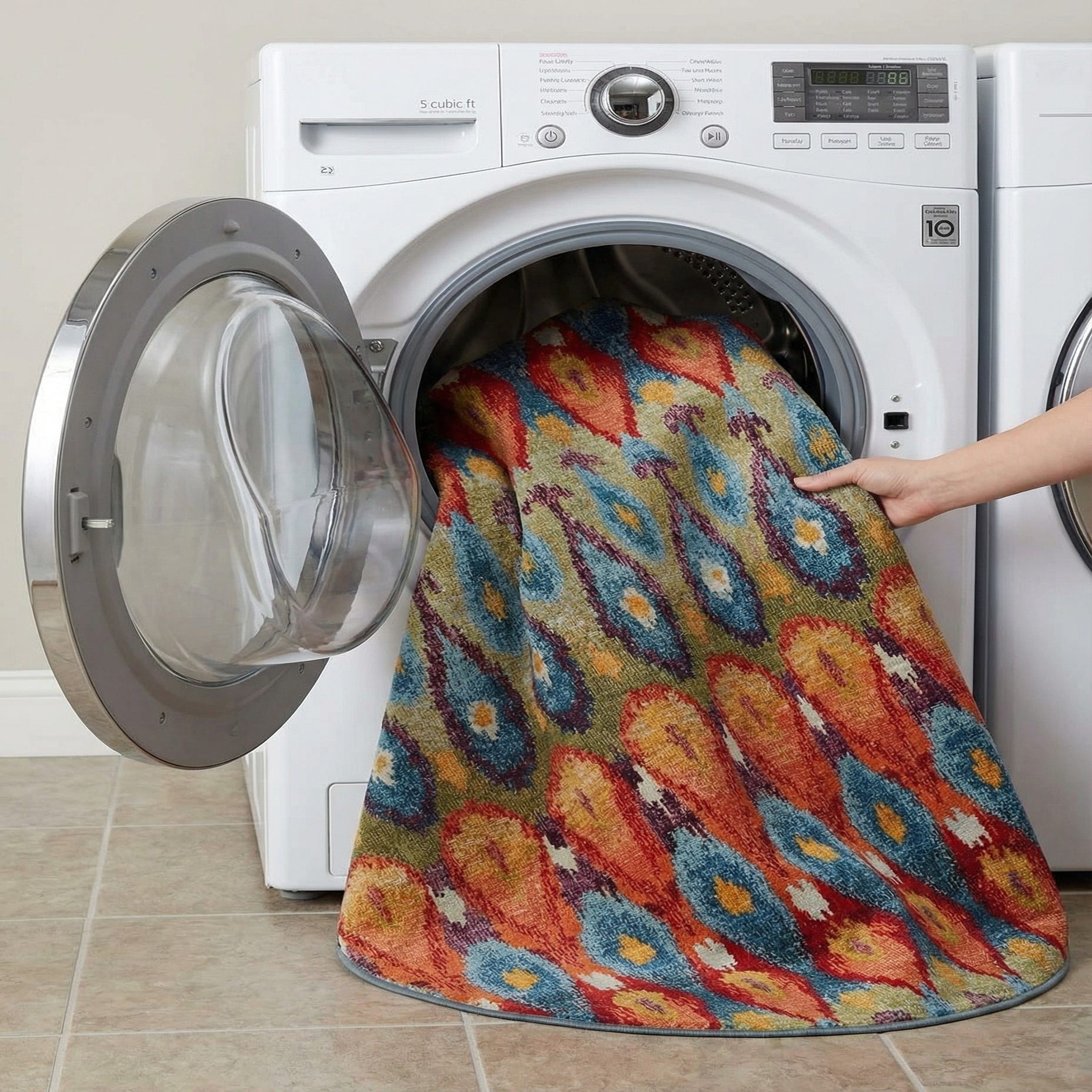 Primary color is Multi. Colors in this rug include: Multi, Burgundy, Gold, Green, Navy Blue, Orange, Red, Olive.
